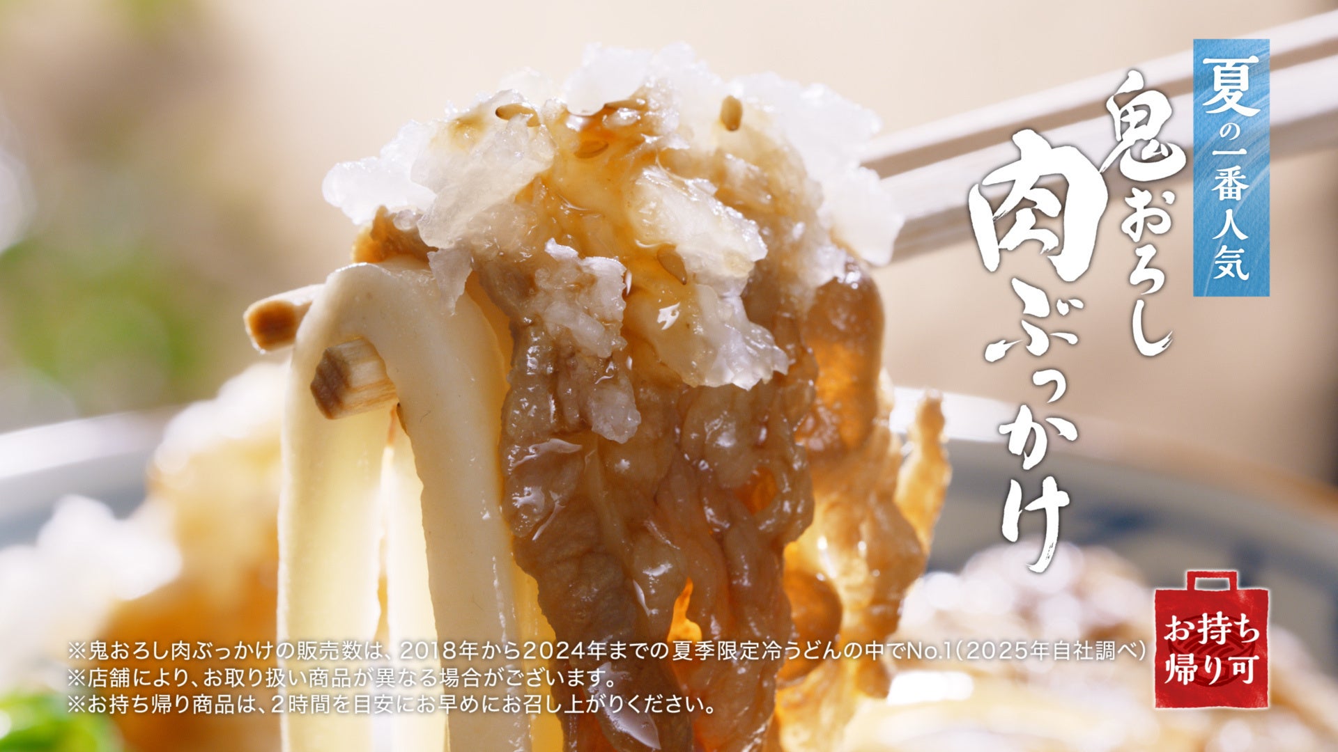 ※2 『鬼おろし肉ぶっかけうどん』の販売数は、2018年から2024年までの夏季限定冷うどんの中でNo.1(2025年自社調べ)