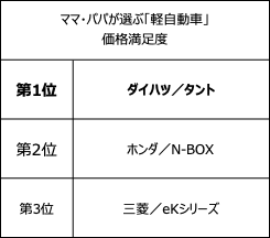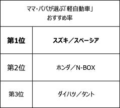 ◆全国のママ・パパが選ぶ「軽自動車」ランキング