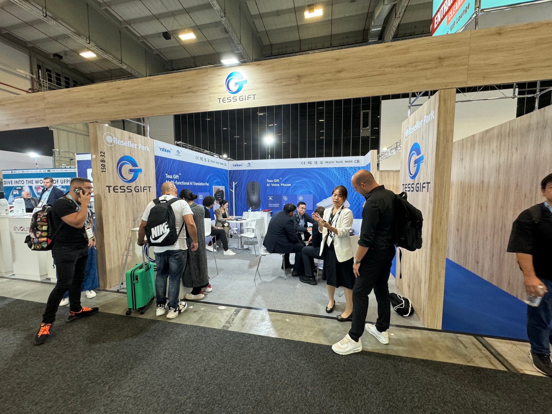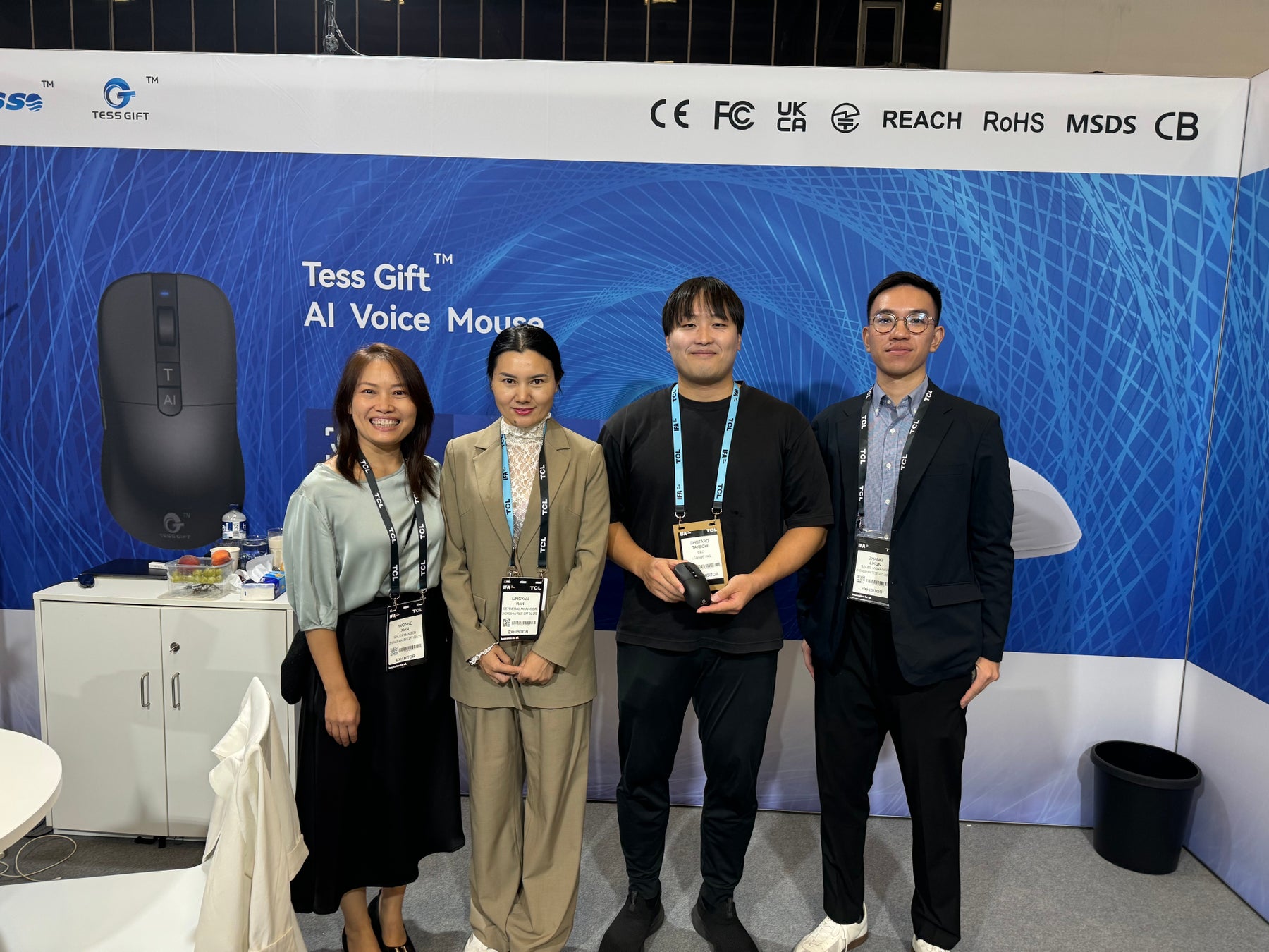 TESS GIFTのAIライティングマウスは、最新のAI技術を駆使し、ユーザーの作業効率を大幅に向上させるツールとして注目されています。このマウスは、音声を認識して自動で文字起こしや文章作成を行うため、プロフェッショナルから一般消費者まで幅広い層に支持されています。展示ブースでは、来場者が実際に製品を体験し、革新性と高い利便性を実感する機会が提供されました。