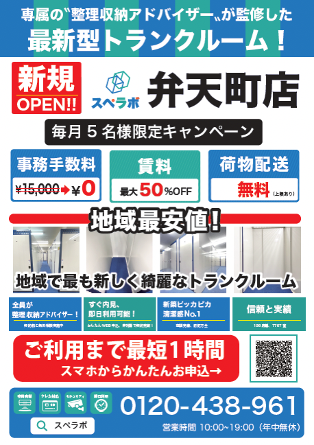 【弁天町店/8月1日(火)オープン】見学から契約、解約まで完全非接触・非対面、お申し込みからご利用まで最短1時間!都内、大阪などにて絶賛運営中のトランクルーム【スペラボ】が弁天町駅近くに出店!