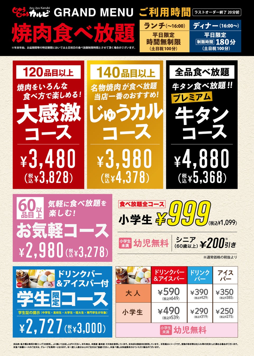 焼肉食べ放題 「じゅうじゅうカルビ」