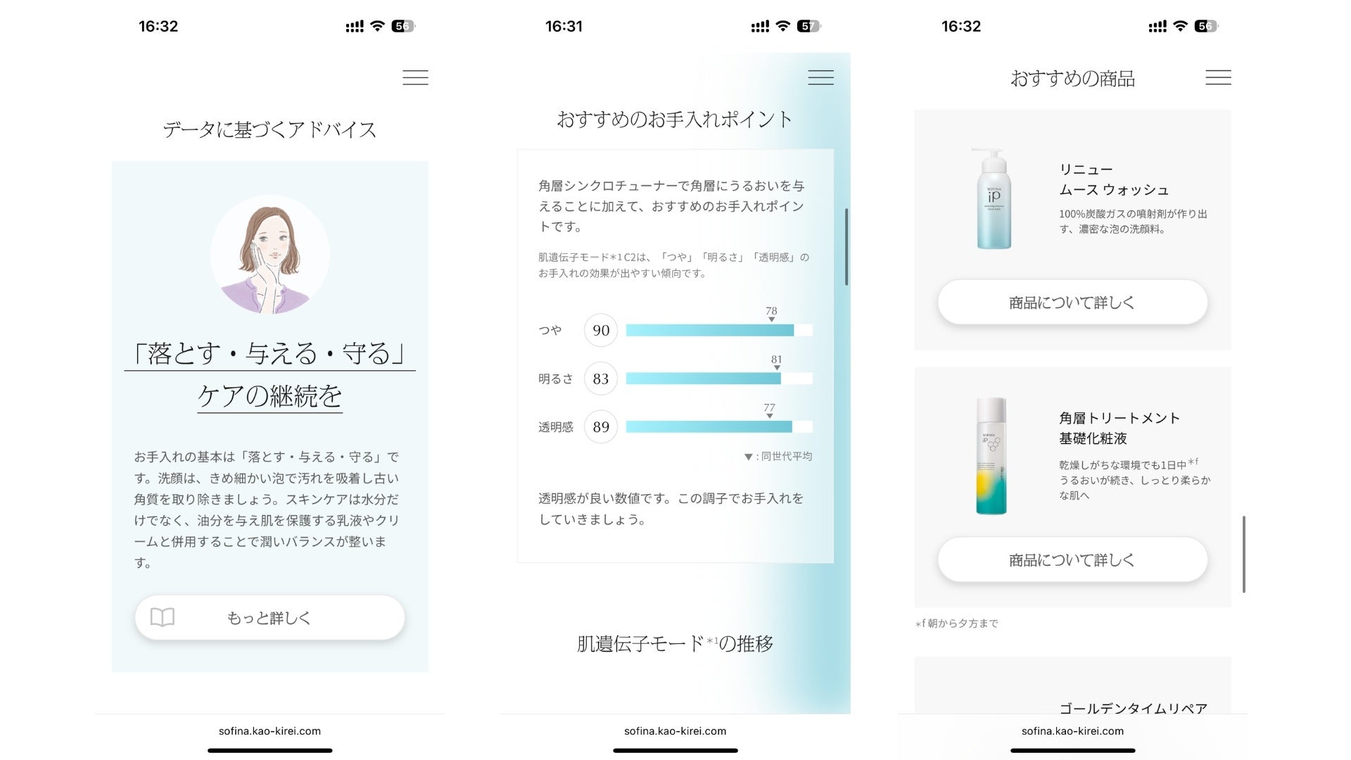 肌遺伝子モード解析は、特別な機器を必要とせず、スマートフォンひとつで手軽に行えるのが特長です。ユーザーは画面の案内に沿って操作するだけで、自身の肌状態を把握できるだけでなく、今の肌状態に合ったおすすめのスキンケア方法までをスムーズに知ることができます。