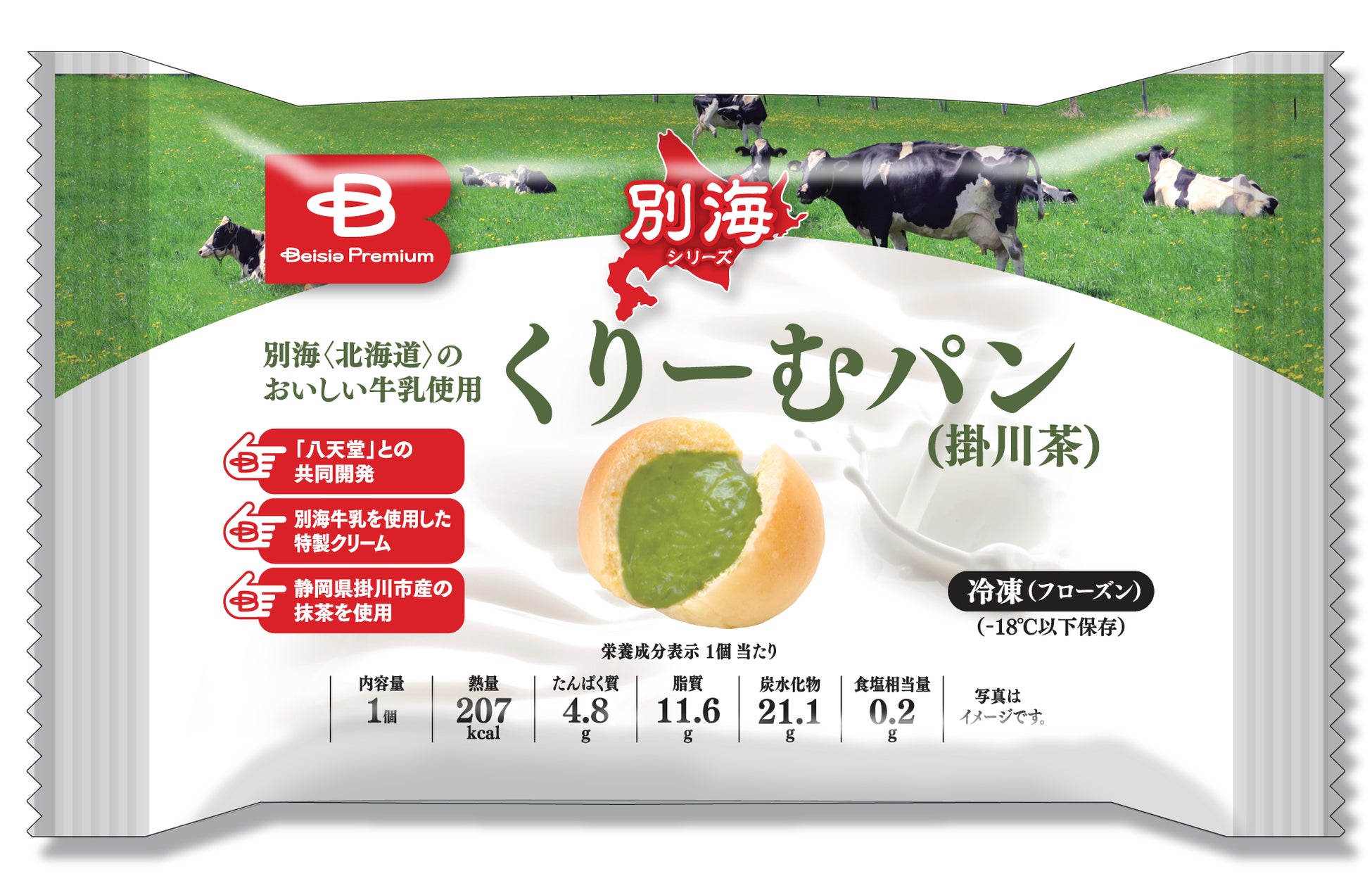 広島県の株式会社八天堂とコラボした「くりーむパン」の新作フレーバーです。「別海のおいしい牛乳」の生乳を使用した特製クリームには、静岡県掛川市産の抹茶を使用しています。お好みにあわせて、冷蔵庫で約6時間の半解凍、約12時間の全解凍と2通りの食感をお楽しみいただけます。