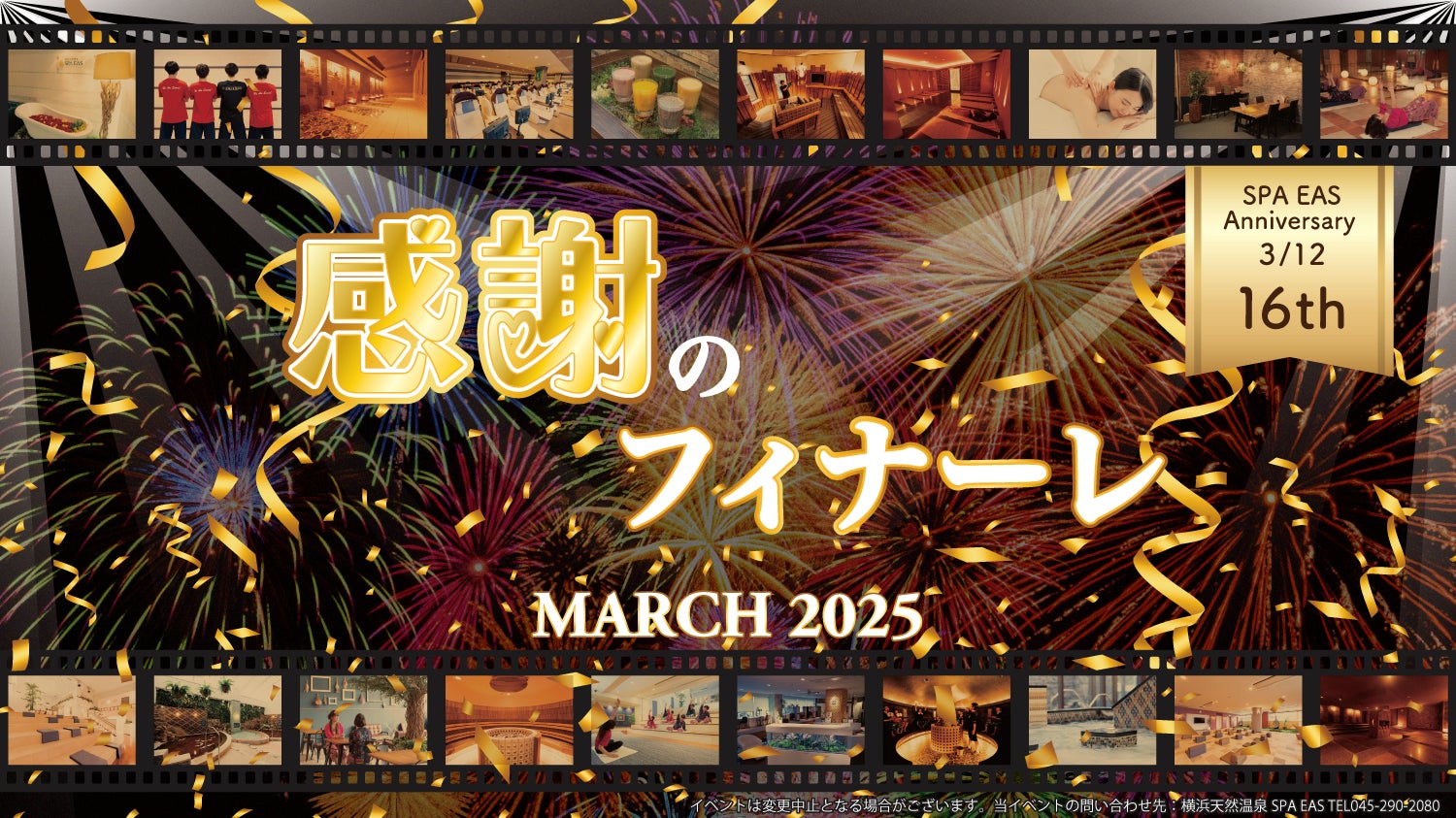 長年のご愛顧に感謝し、3月は「感謝のフィナーレ」をテーマに、横浜天然温泉SPA EASの集大成となる各種イベントを展開しております。16周年記念日である3月12日(水)には、オリジナルグッズが当たるタブレットくじを開催いたします。