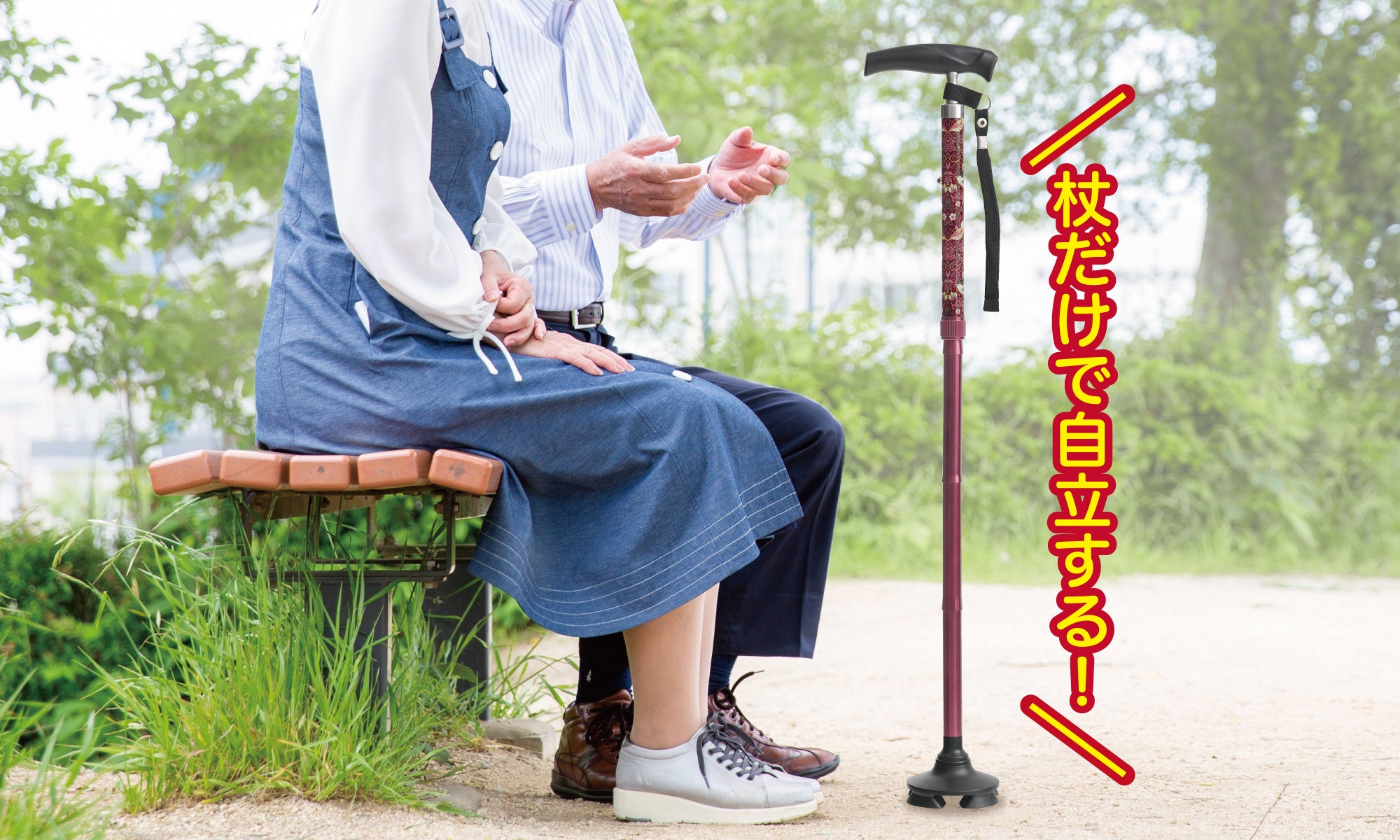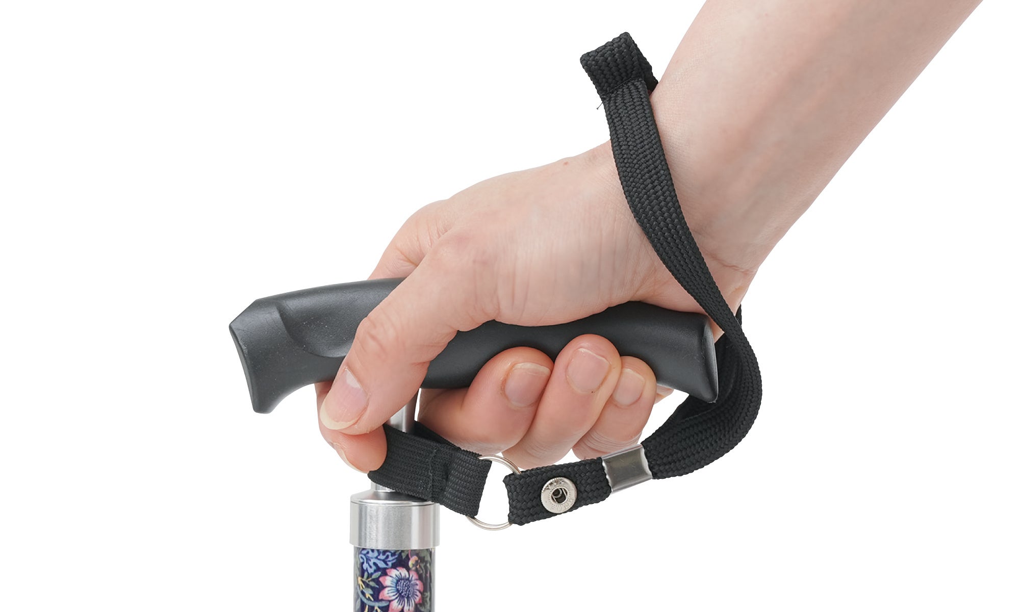 ストラップを手首に巻いておけば、杖が滑り落ちる心配もありません。