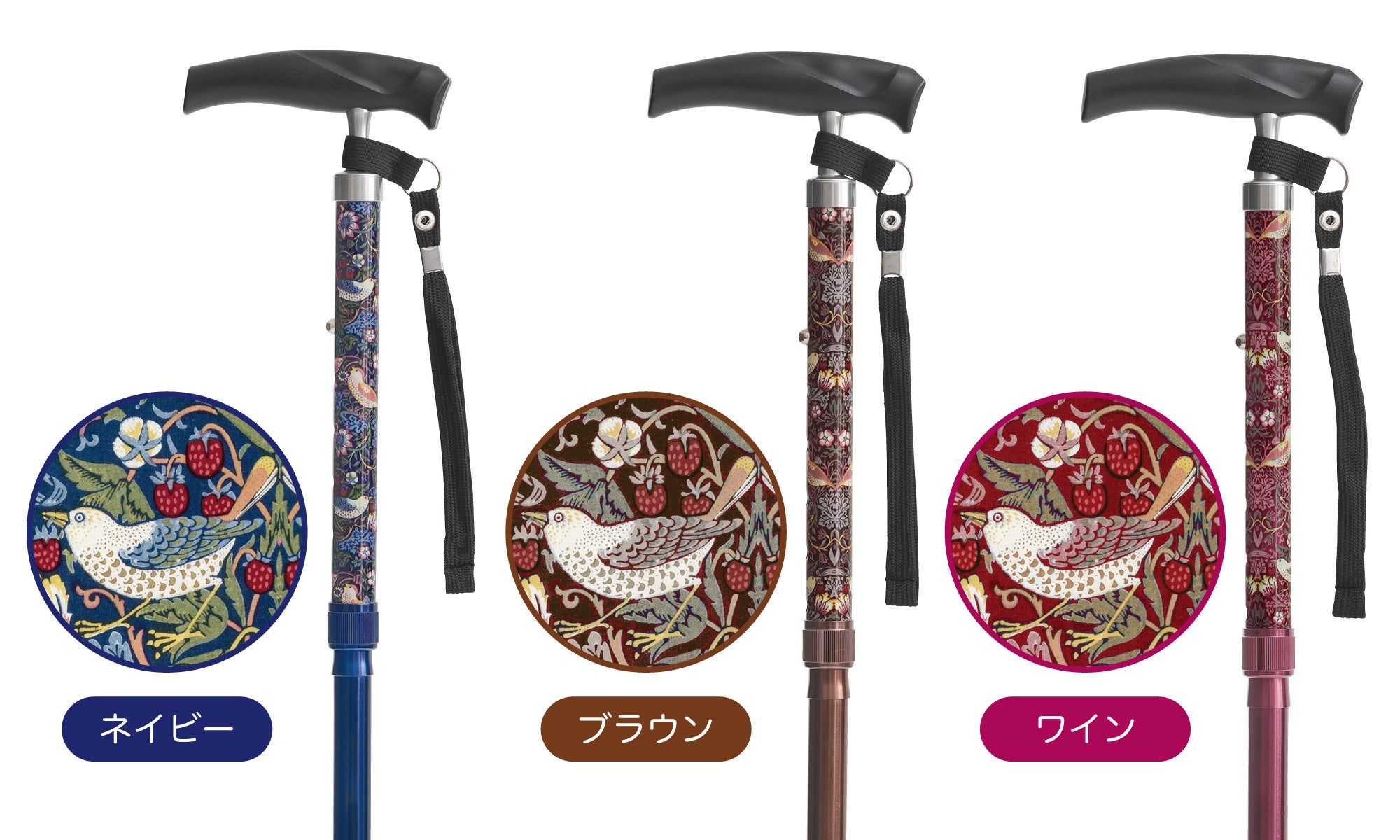 歩くたびに気持ちが華やぐ!お出かけが楽しくなる!「いちご泥棒」柄のオシャレなステッキ。