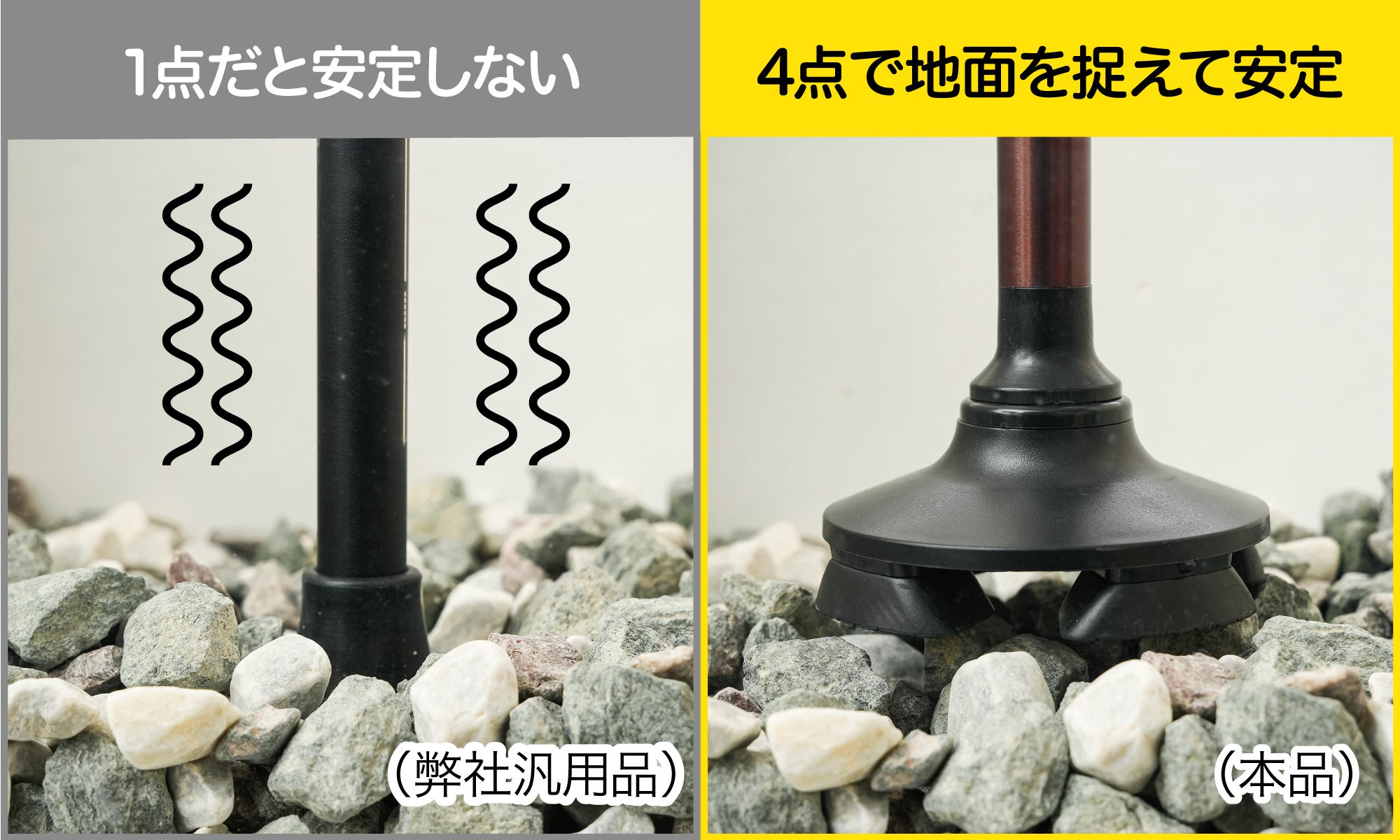 1点だと不安定なところでも4点だと接地面積が広くしっかり地面をとらえて、安心♪