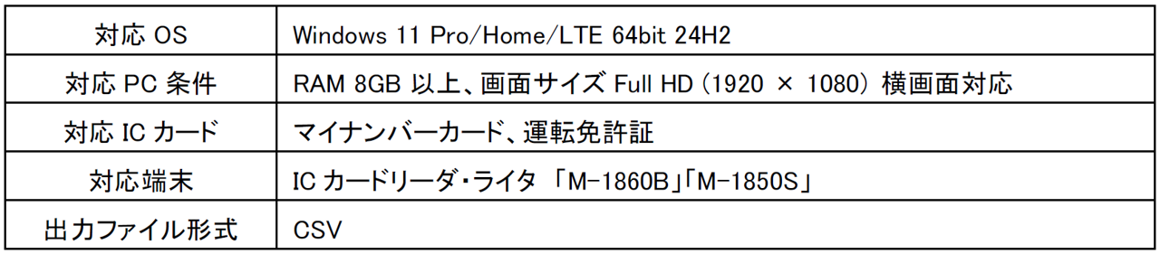 Windows PCとICカードリーダ・ライタのみで完結する構成により、個人情報の外部への漏洩リスクを低減し、対面接客における本人確認書類の読み取りの環境を提供します。今後は、iPad版やAndroid™版アプリケーション、ならびにソフトウェア開発キット(SDK)など、ラインアップの順次拡充を予定しています。