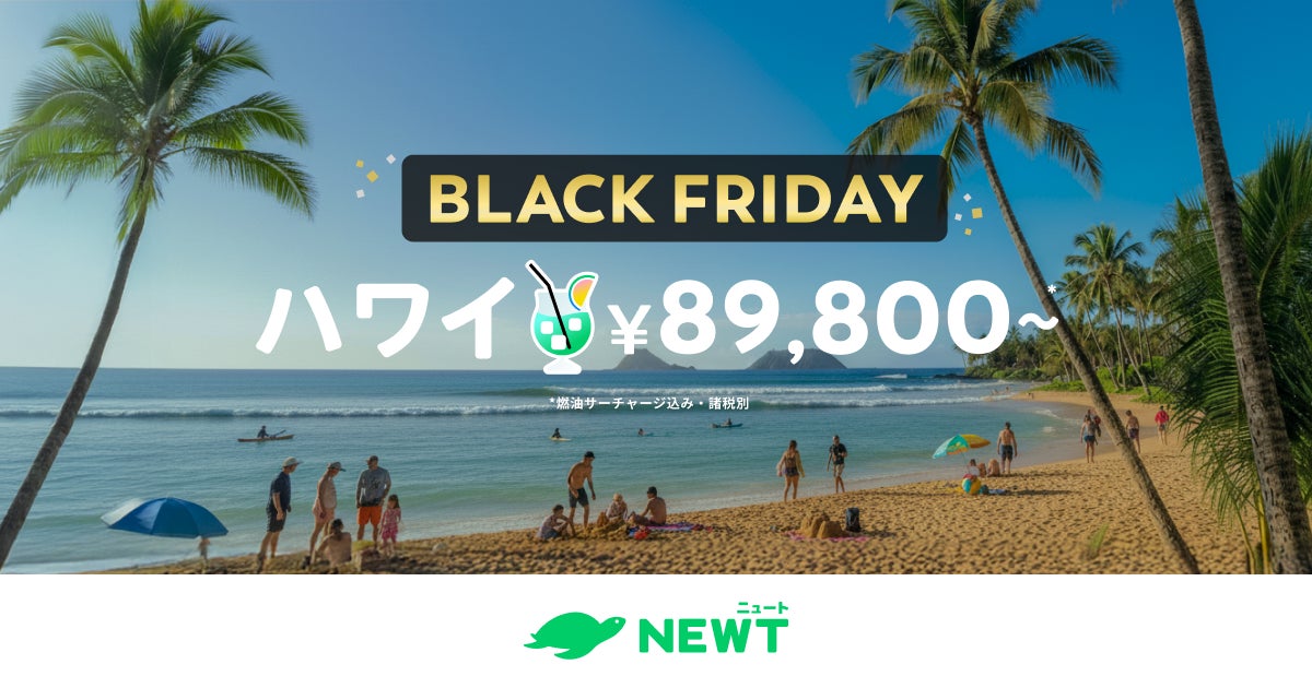 今回、旅行アプリ『NEWT(ニュート)』では、アメリカ発祥の大型セール「BLACK FRIDAY」にちなみ、さらに海外旅行をおトクにお届けできるよう「冬のごほうびセール」にあわせて「BLACK FRIDAY」を展開します。