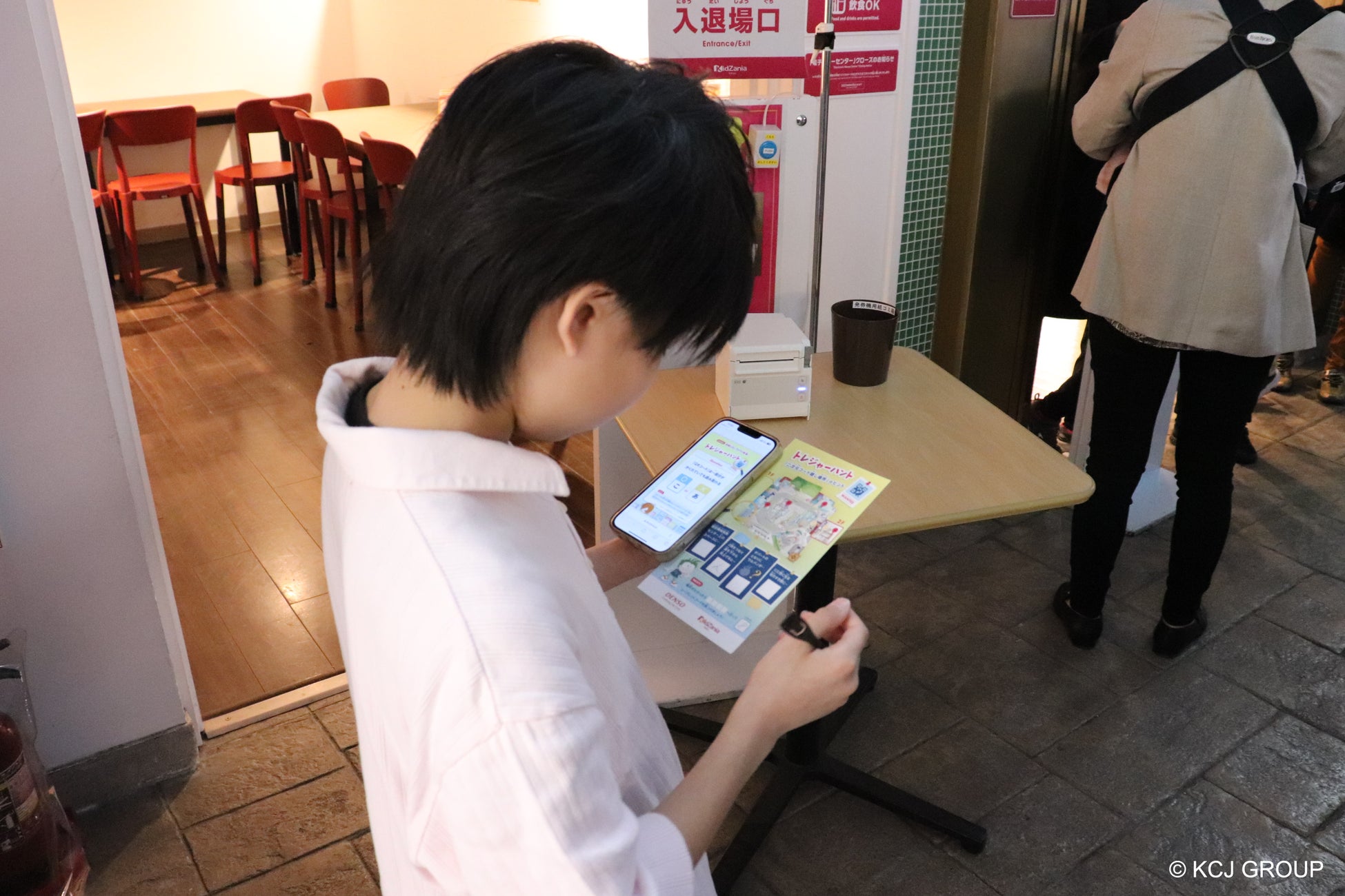 さらにイベント期間中に実施している、キッザニアの街に隠された二次元コードを読み込み、謎を解いてシークレットコードを見つける「トレジャーハント」では、スマートフォンを手に謎解きにもチャレンジしていました。