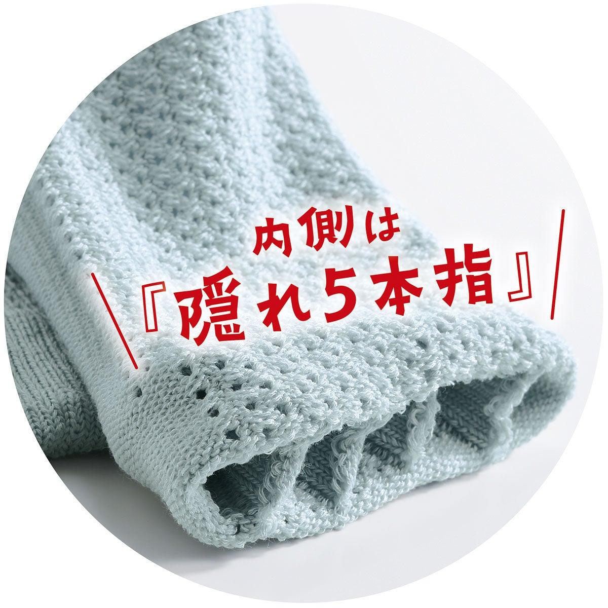 メッシュ編のショート丈もおすすめ。シャリ感のある素材で、暑い日にぴったり♪指裏の付け根もメッシュ編でさらさらをキープします。