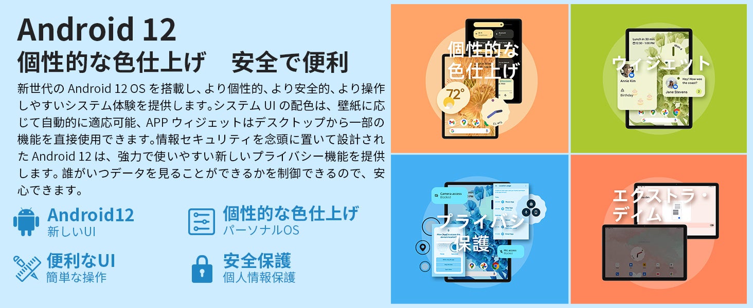 新世代のAndroid 12 OSを搭載し、より個性的、より安全的、より操作しやすいシステム体験を提供します。システムUIの配色は、壁紙に応じて自動的に適応可能、APPウィジェットはデスクトップから一部の機能を直接使用できます。Beidou、GPS、グロナス、ガリレオの4大グローバル衛星測位システムに対応しています。A-GPSネットワーク補助測位に合わせて使用することで、より高精度かつ高速度なナビゲーションサービスを提供します。