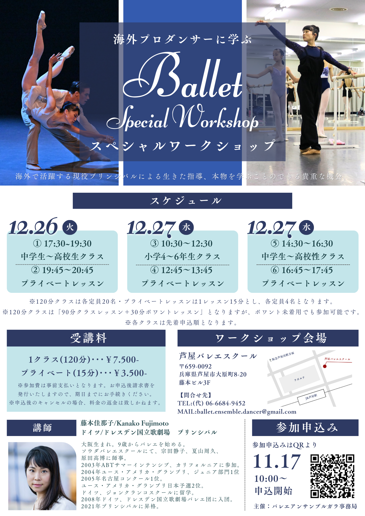 【会場】芦屋バレエスクール(兵庫県芦屋市大原町8−20 藤本ビル3F)