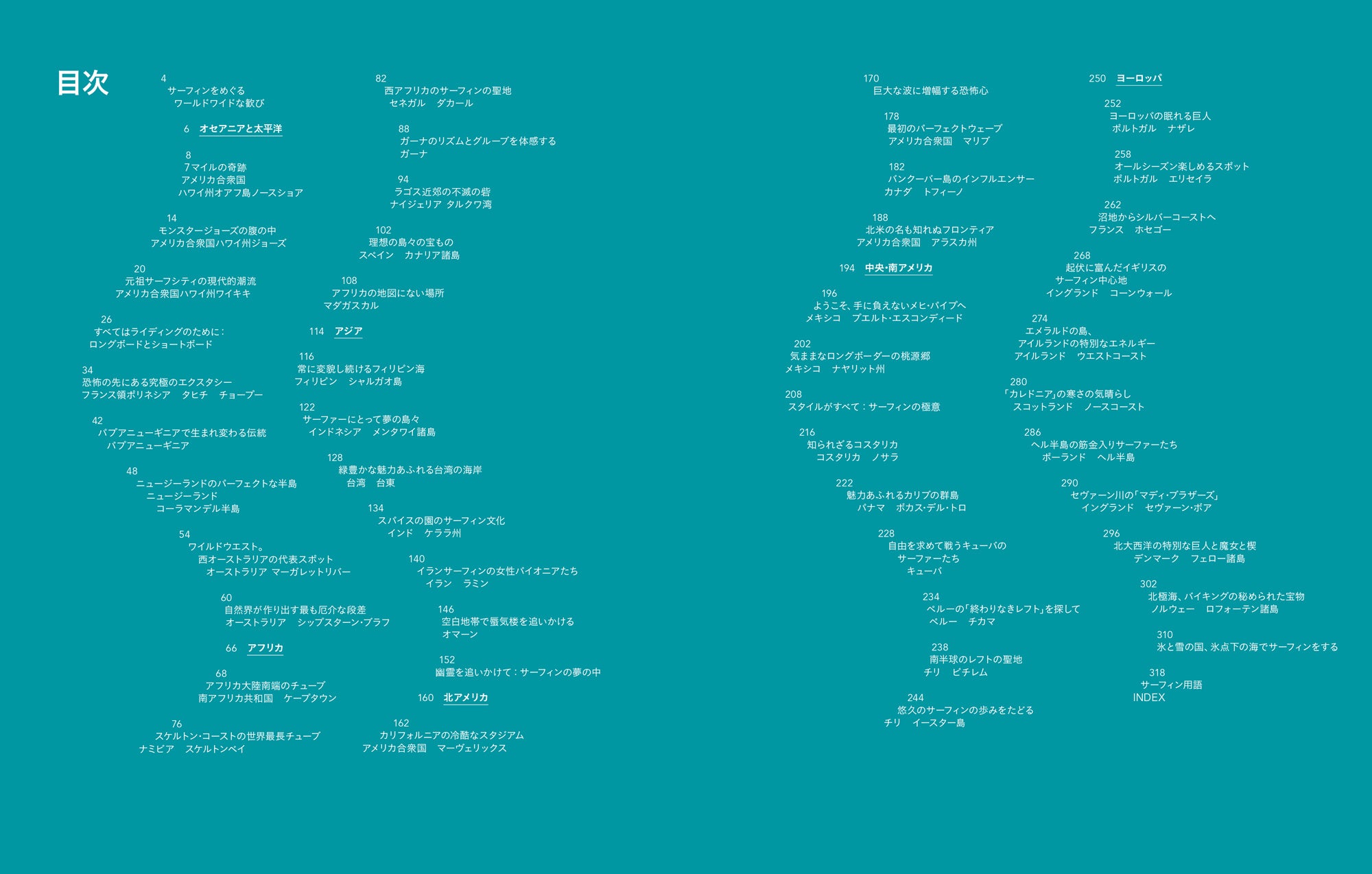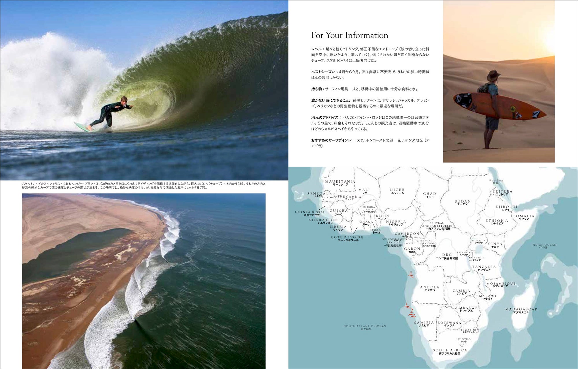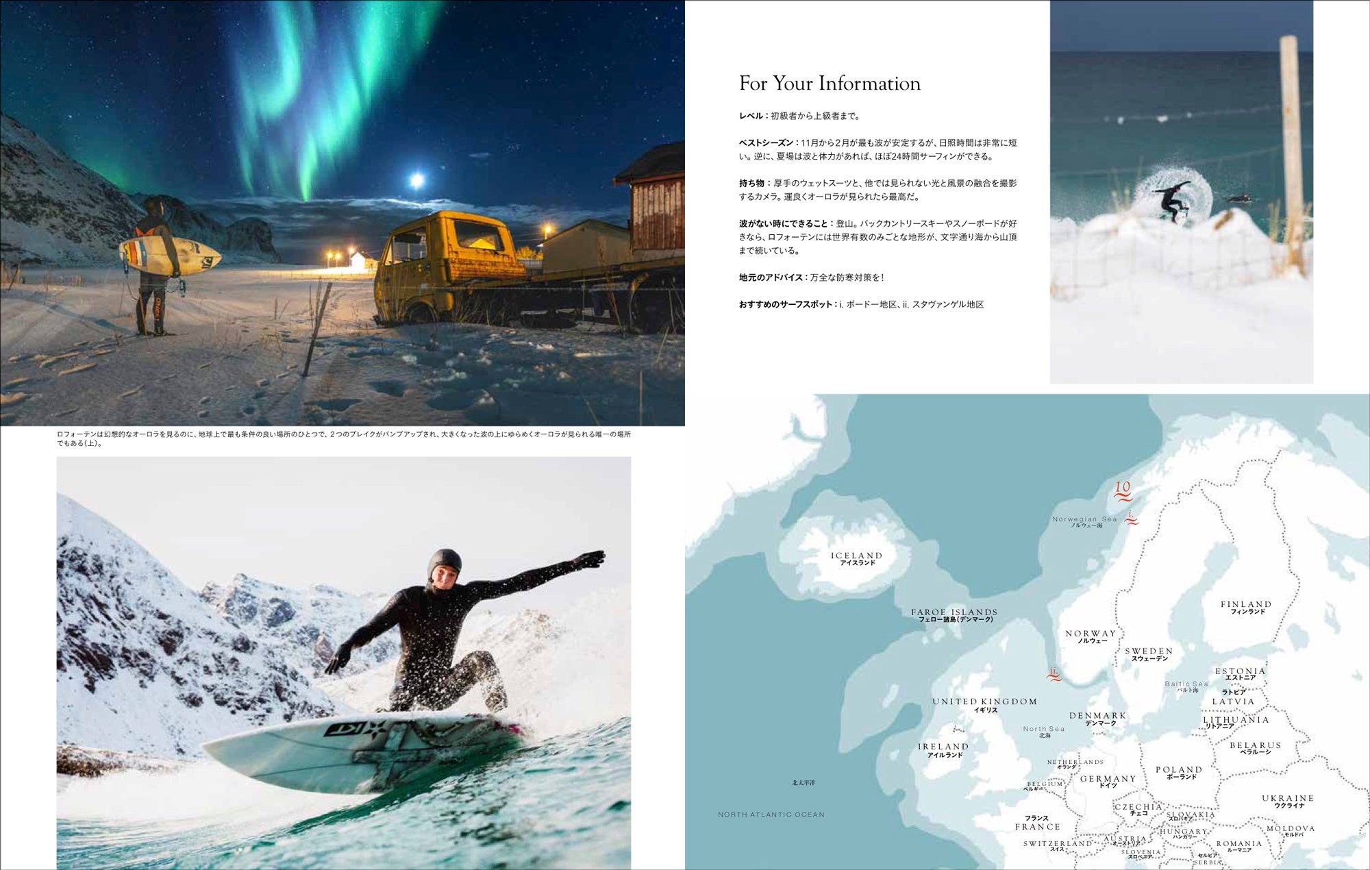 世界6地域から厳選した43のスポットは、どれも唯一無二、アイコニックな波ばかり。伝説の波、新興のビーチ、知られざるスポットを紹介する、いまいちばん新しいサーフィンマップ!
