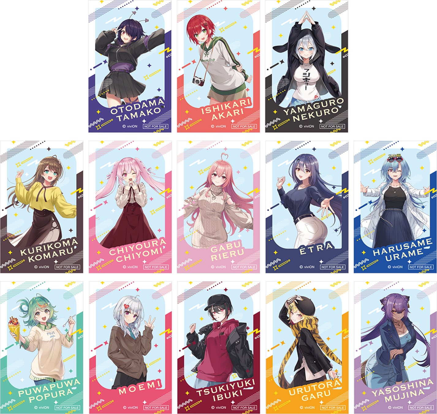 所属VTuber:音霊魂子、石狩あかり、大代真白、山黒音玄、栗駒こまる、千代浦蝶美、我部りえる、エトラ、春雨麗女、ぷわぷわぽぷら、萌実、月赴ゐぶき、うる虎がーる、八十科むじな(2024年10月時点)