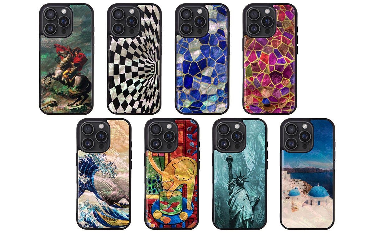 本製品は天然貝が持つ特有の光沢に、絵画や風景を組み合わせたユニークなデザインが特長で、人と自然が生み出す美しさの融合が楽しめるケースです。