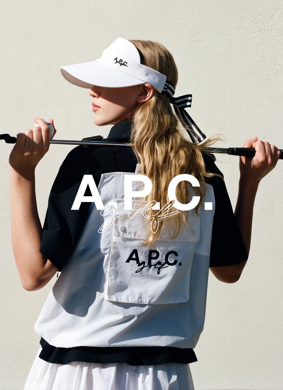 A.P.C. GOLFはユーモラスな要素に機能性を加え、典型的なゴルフウェアの枠を超え、フィールドと日常を楽しめるゴルフウェアです。