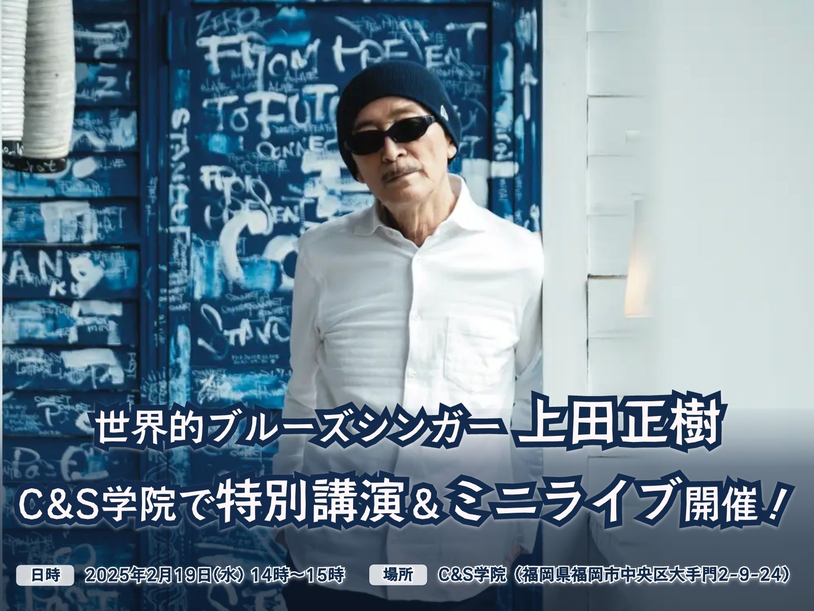 株式会社ファーストイノベーション(本社:東京都中央区、代表取締役社長:木ノ根雄志、以下ファーストイノベーション)は、C&S学院にて開催される世界的ブルーズシンガー・上田正樹氏を迎えた特別講演&ミニライブのWEB周りの支援を担当いたします。本イベントは、音楽を通じて若者に夢と情熱を伝える貴重な機会となります。