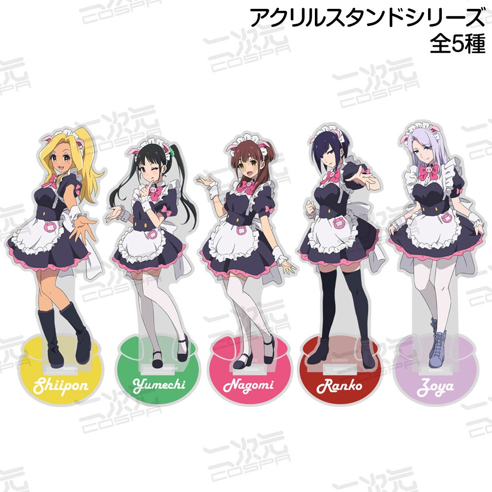 『アキバ冥途戦争』より、「なごみ」「嵐子」「ゆめち」「しぃぽん」「ゾーヤ」のアクリルスタンド、「メイドカフェとんとことん」「なごみチェキ」Tシャツなど新商品が二次元コスパから登場。