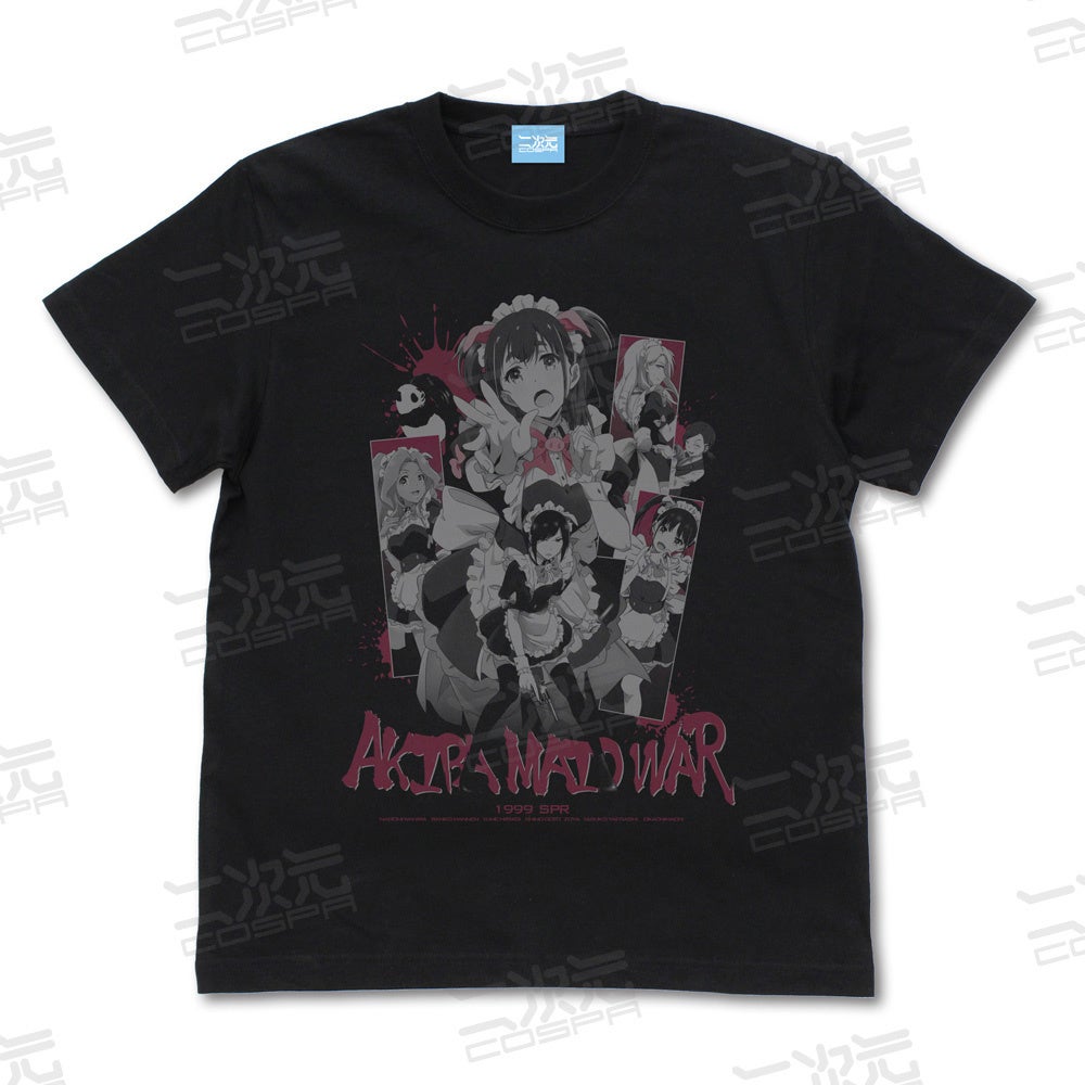 萌えと暴力の世界に生きるメイド達を映画のポスター風にデザインしたTシャツ。