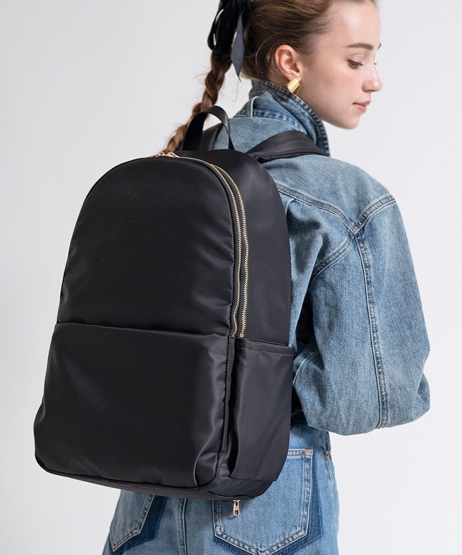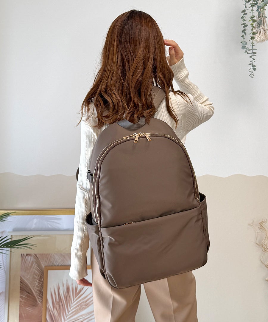 高級感ある上質な撥水ナイロン生地で、カジュアルダウンしすぎず、程よい上品さも保ちます。