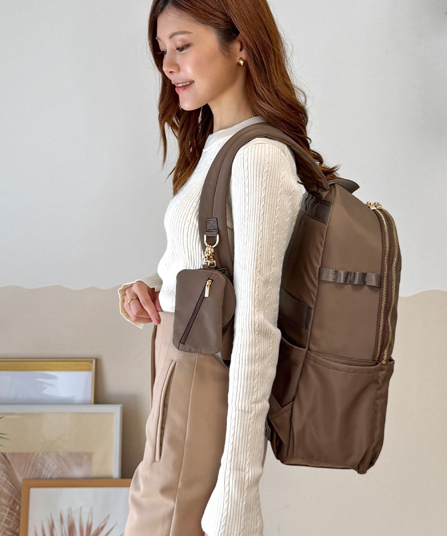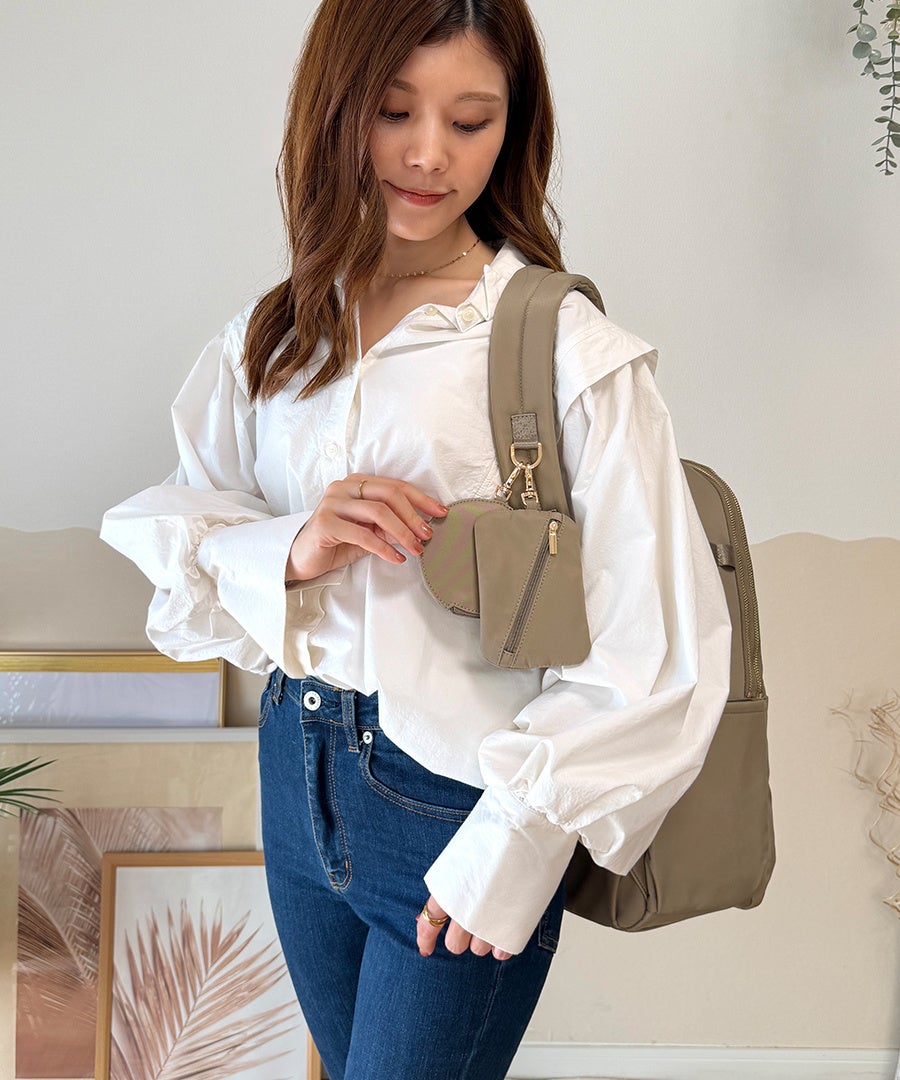 取り外し可能なミニショルダーバッグやポーチが付属。特にミニショルダーは「おまけレベル」ではないこだわりを持って作りこみ、機能性も◎。旅先で身軽に動きたいときになど便利に使えます。