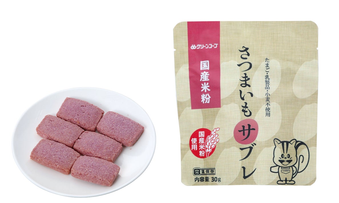 西日本を中心に16の生協で構成されている一般社団法人グリーンコープ共同体(本部:福岡市博多区、代表理事:日高 容子、以下グリーンコープ)は、3大アレルゲン(小麦・卵・乳製品)を完全に排除した国産米粉のGC「米粉のサブレ(さつまいも味)」を販売します。この商品は、近年増加する食物アレルギーの子どもが安心して食べられるお菓子が欲しいという組合員(消費者)の声で生まれました。また、グルテンフリー食品は健康志向の人たちからも支持を得ています。