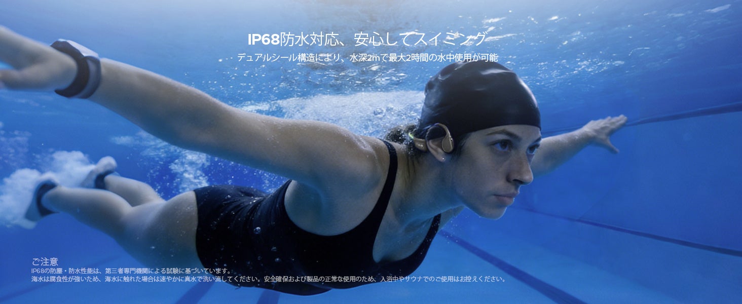 Bluetooth 6.0による安定接続に加え、32GB内蔵ストレージで最大約8,000曲保存可能。 スマートフォンなしでも音楽再生が可能で、水中やアウトドアでも活躍します。