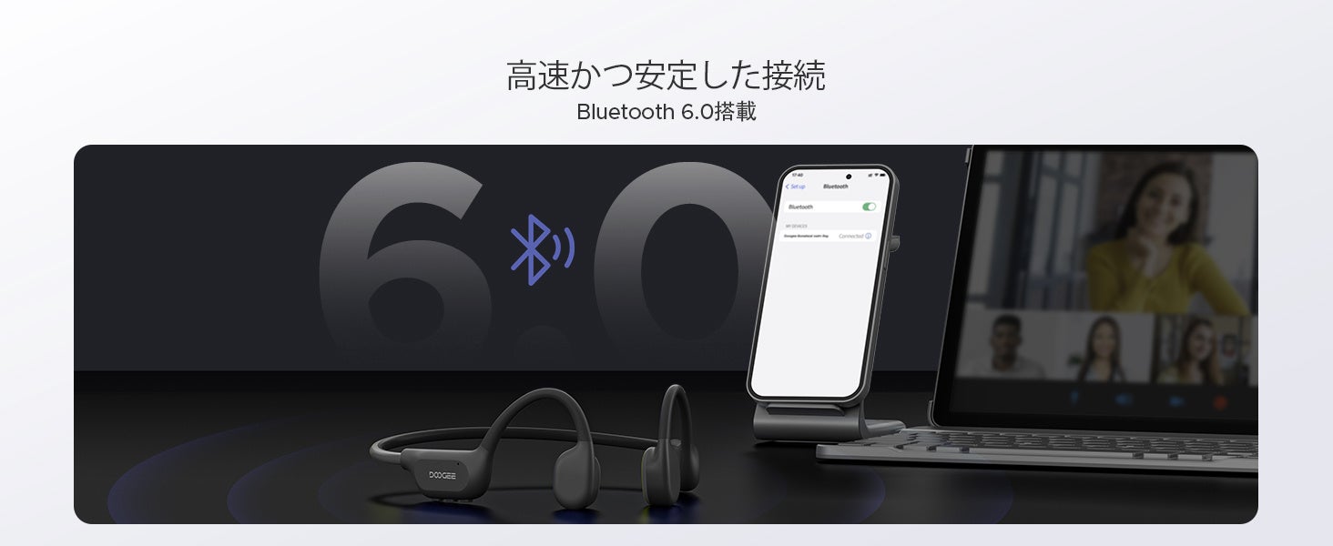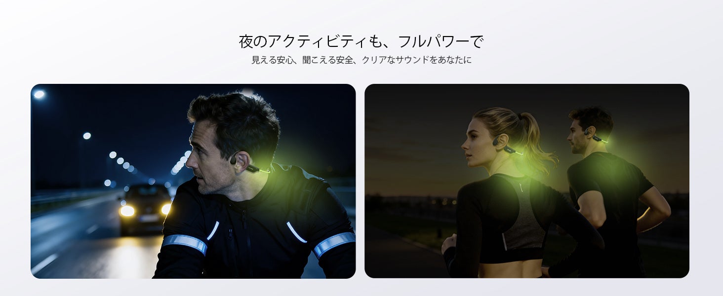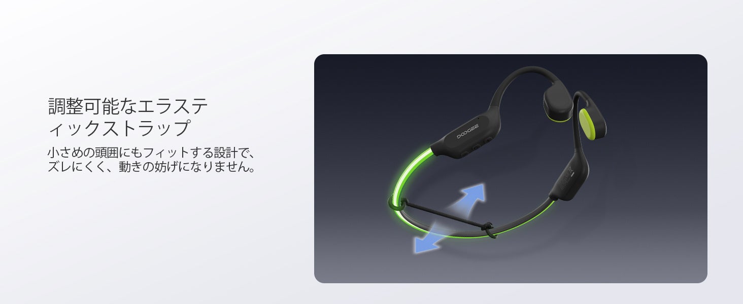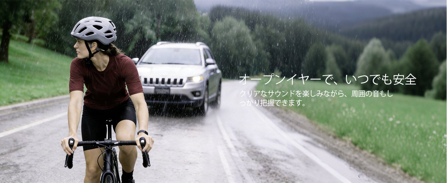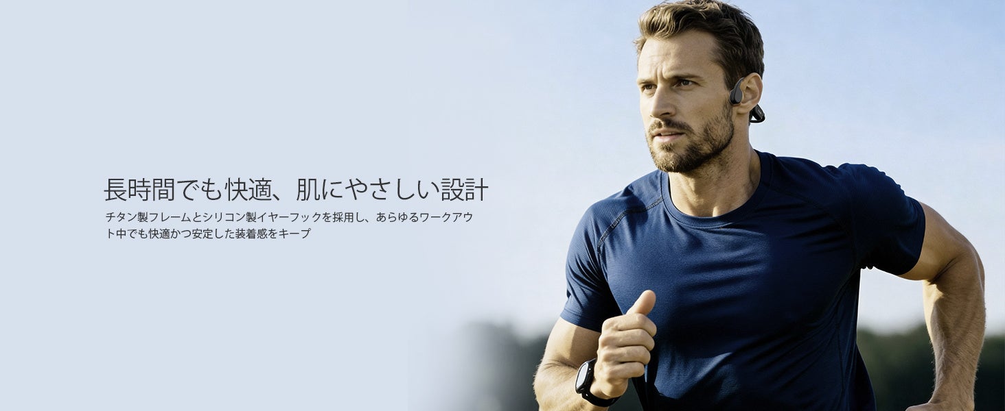チタン合金メモリーワイヤーとシリコン素材を採用。 耳を塞がないオープンイヤー設計で圧迫感ゼロ、激しい運動中でもズレにくい設計です。