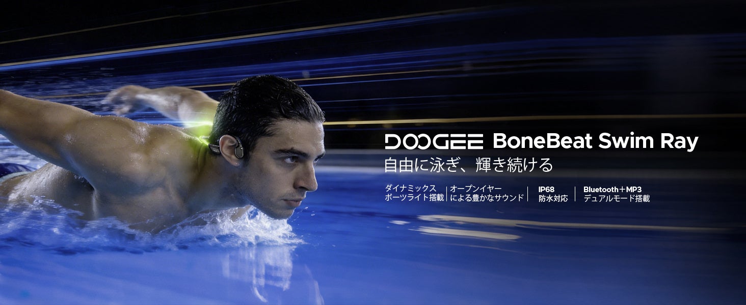 【赤字覚悟56%OFF】Bluetooth6.0 水中でも音楽体験を解放DOOGEE「BONEBEAT SWIMRAY」骨伝導イヤホンが6,900円で登場|IP68防水・32GB内蔵・夜間発光ライト