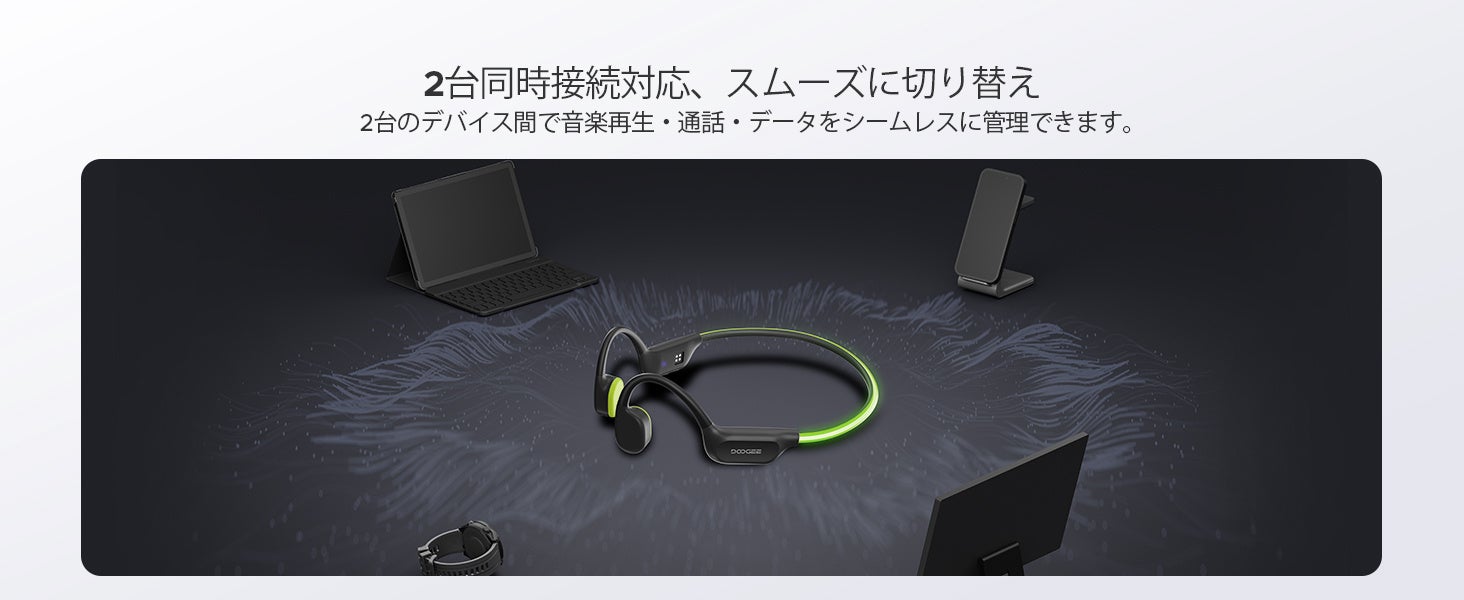 2台のデバイスに同時接続可能。スマートフォンとPCをシームレスに切り替え。