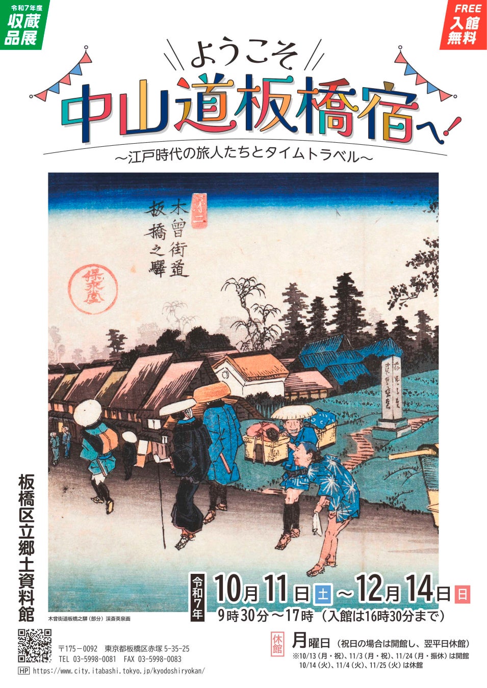 板橋区立郷土資料館において、令和7年10月11日(土)から12月14日(日)まで、収蔵品展「ようこそ中山道板橋宿へ!~江戸時代の旅人たちとタイムトラベル~」を開催します。