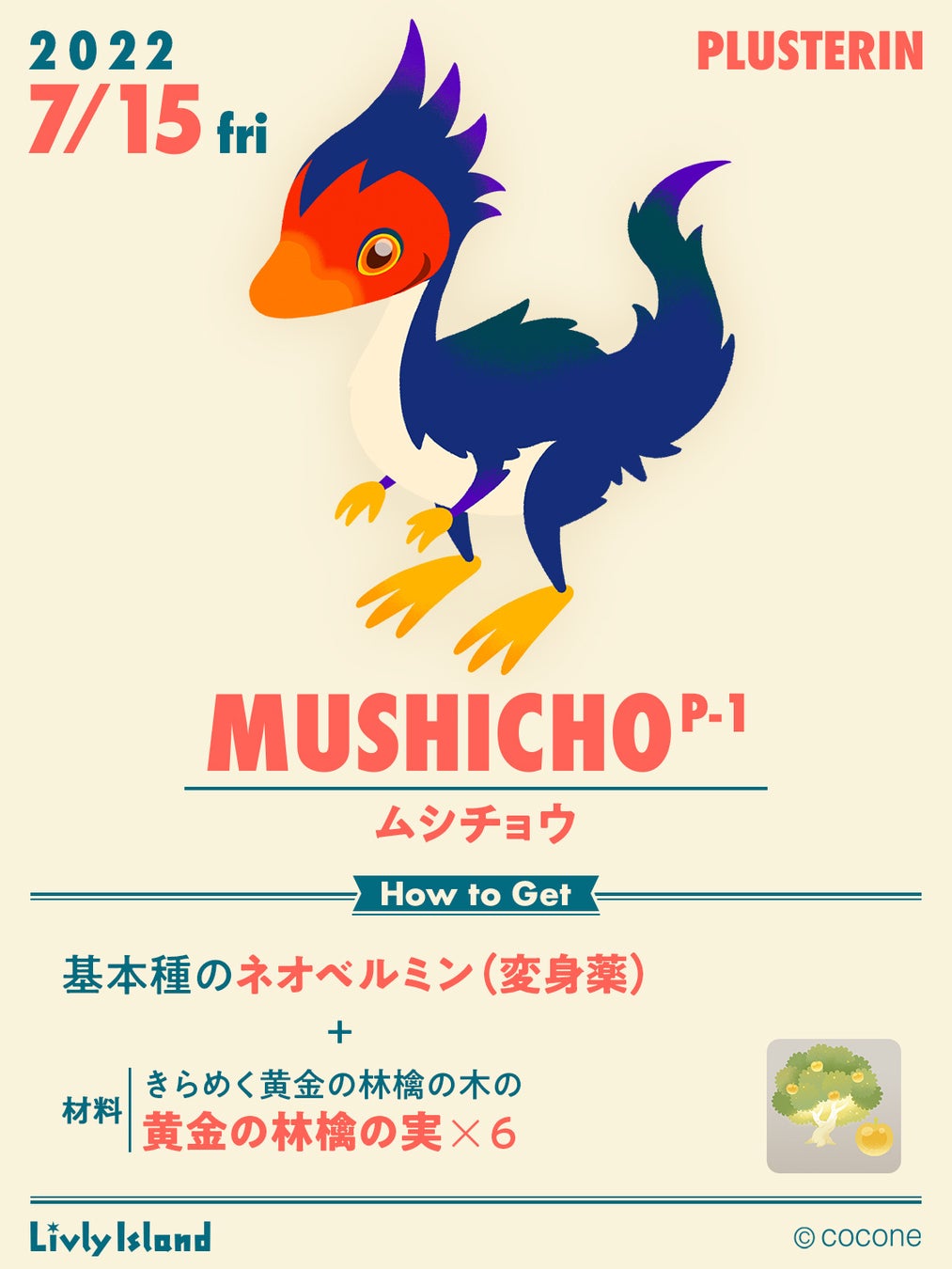 気高い雰囲気漂うスペシャルなリヴリー「ムシチョウ」の新たなプラステリン種となる「ムシチョウP-1」を飼えるようになります。ラッキーバッグに入っているツリーの実を使うことで、ムシチョウのプラステリンを生成できます。
