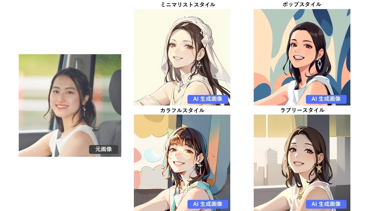 9種類のスタイルから選択でき、複数人の写真にも対応しています。