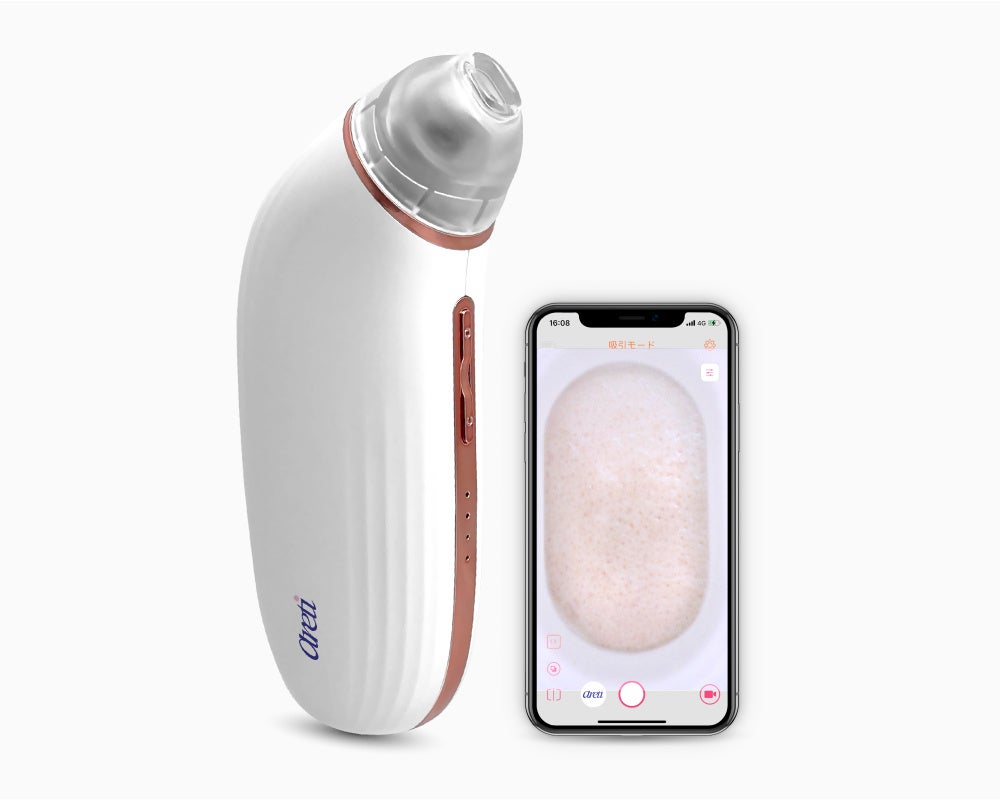 アレティの毛穴吸引器「ポアスコープ(b2007WH)は、しっかり密着しながらも肌に負担をかけにくい最大値60kPaの吸引力で、3段階の調節機能付き。ヘッドは“見る” “吸い出す” “整える”に適した3タイプを付属。