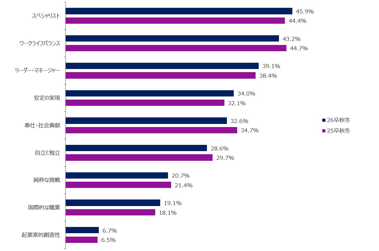 専門性とワークライフバランスの両立したキャリアを志向する学生が増加。