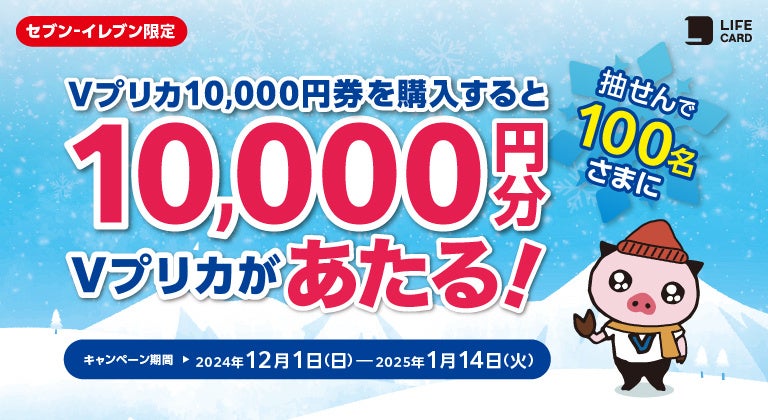 ライフカード株式会社(本社:神奈川県横浜市/代表取締役社長:増井 啓司)が発行しているVisaプリペイドカード『Vプリカ』について、2024年12月1日(日)より実施のセブン‐イレブン限定キャンペーンについてお知らせします。