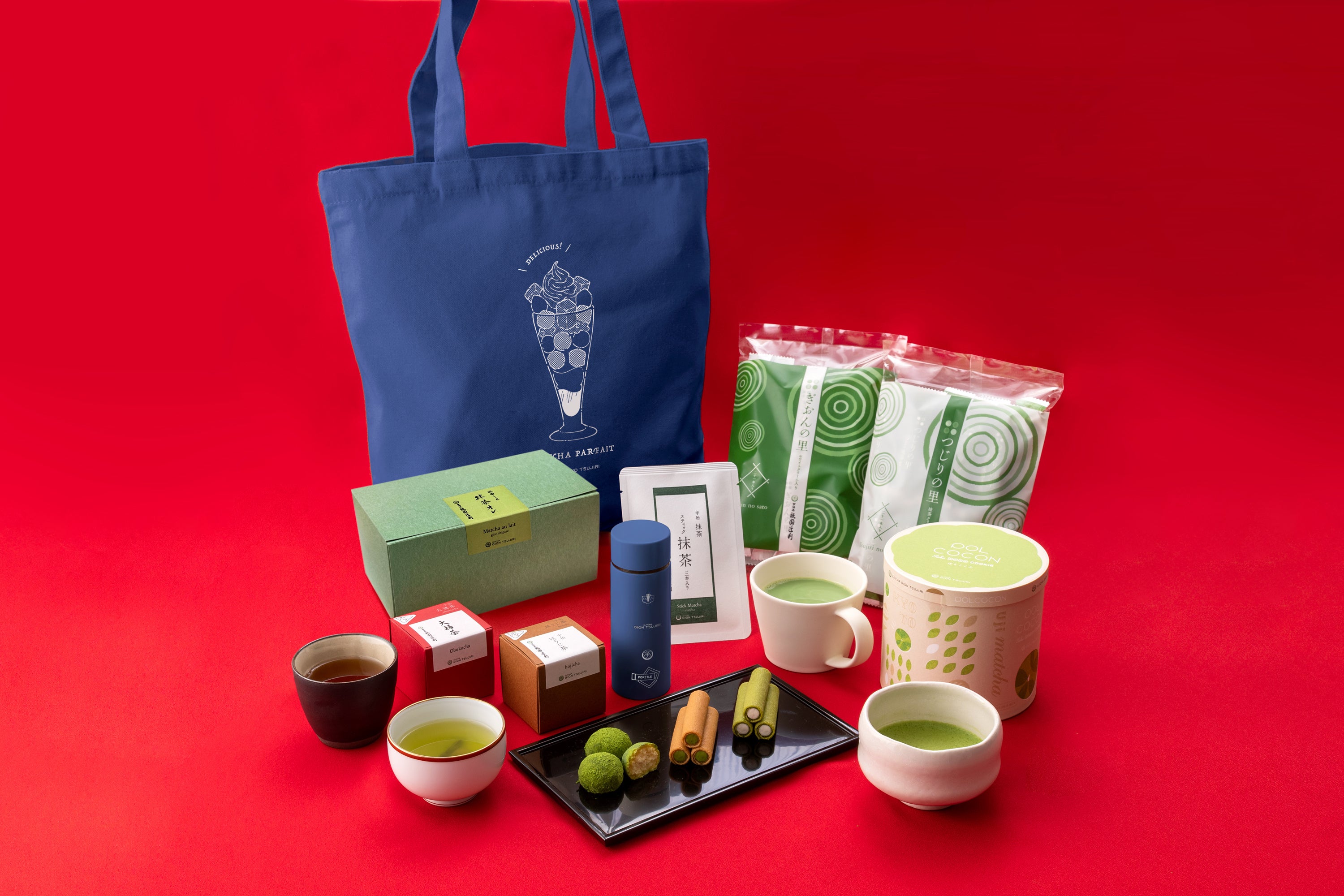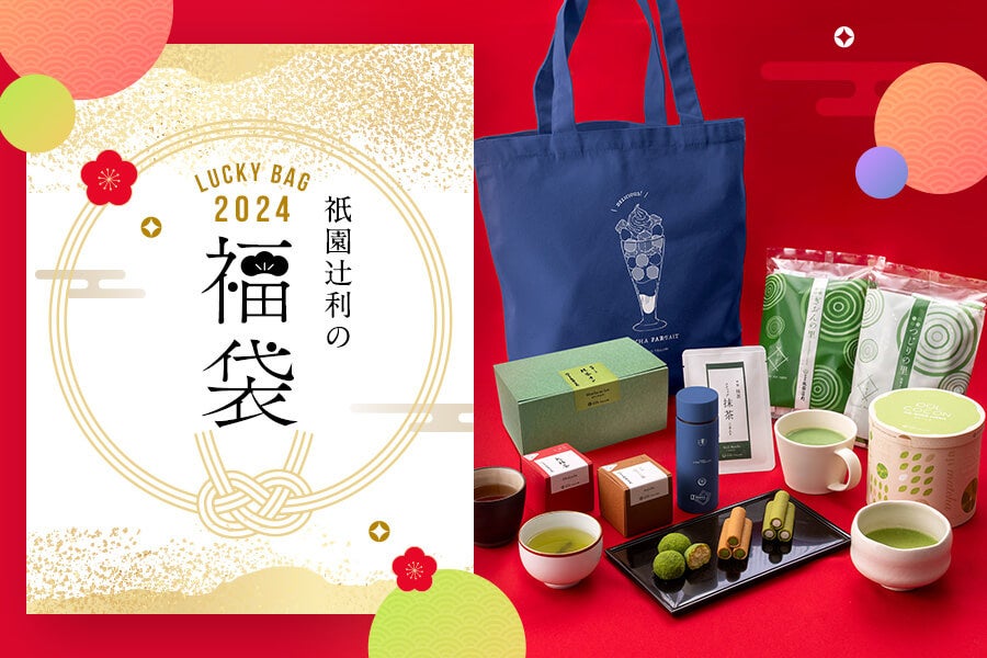 福袋は、この時期しか味わえない京都に受け継がれる新年の縁起物「大福茶」をはじめ、香ばしい「ほうじ茶ティーバッグ」や濃厚「抹茶オレ」、そしてサクほろ食感が楽しいひとくちサイズのクッキー「POLCOCON(ぽるここん)」やブランドNo.1の人気抹茶菓子「つじりの里」といった全8品に加え、茶寮都路里の人気メニュー 「特選都路里パフェ」のイラストがあしらわれた特製(非売品)トートバックが付いている、この時期だけの“特別なセット”となっております。なかでも、昨年再販の希望の声が上がるほど注目されたトートバックは、 2024年版としてネイビーの限定カラーが登場します。