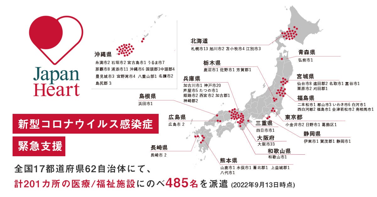 また、大阪府内においては、第6波以前(2020年12月~)より計33カ所のクラスター発生施設にのべ55名の医療チームスタッフを、入院待機ステーションには6名のスタッフを派遣しました。