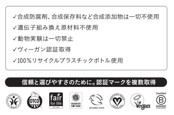 企業理念とするドクターブロナーは、「人間も動物も植物も、同じ地球という