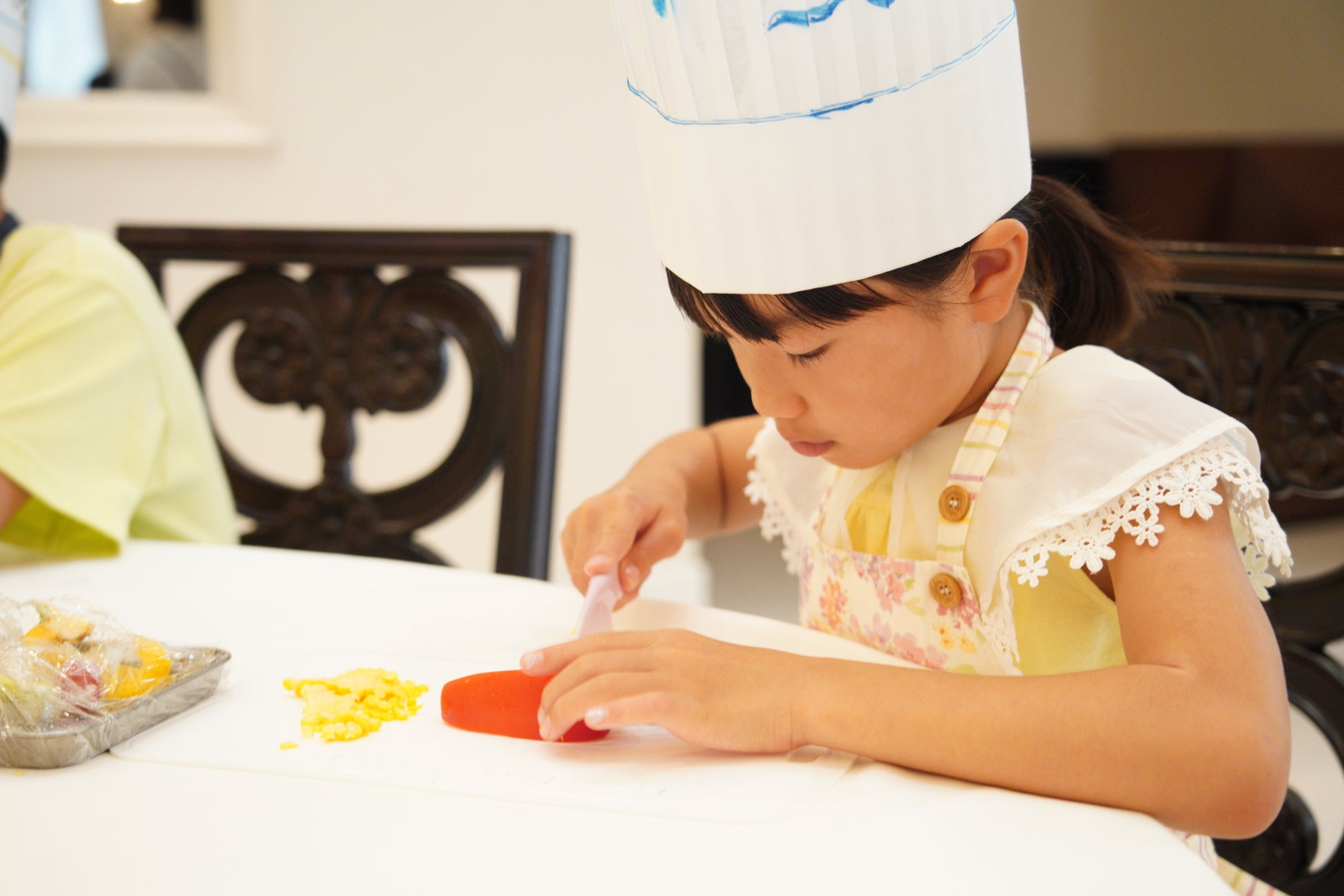 「食育体験」は、会場ごとに結婚式場ならではのオリジナルメニューを作り、料理の楽しさや調理方法を知るプログラムです。結婚式の料理では定番のオマール海老やホタテを捌くことで命の大切さを学ぶ、地域の特産品を調理し、地産地消について考えるなどの機会を提供します。