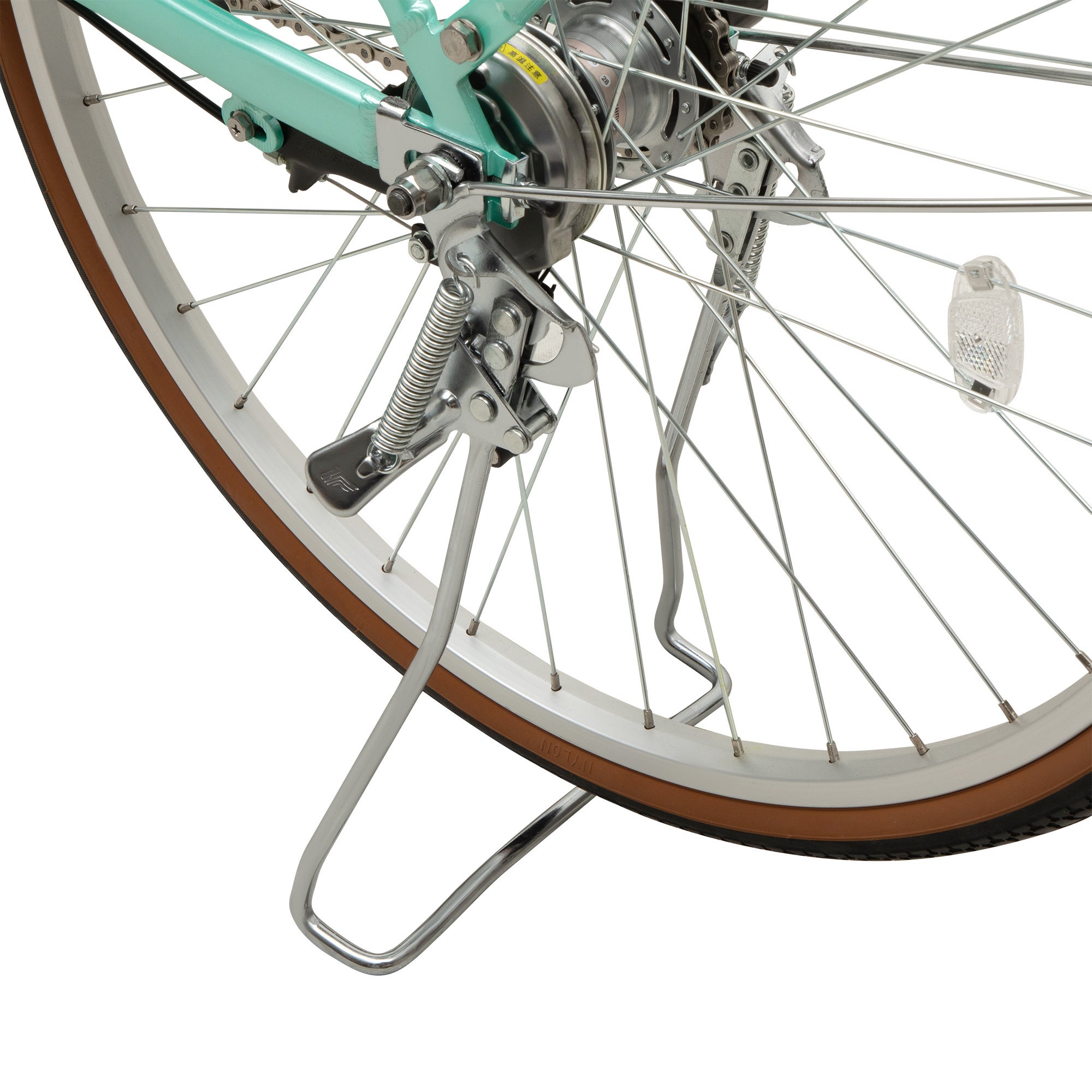 てこの原理でスタンドが立てやすく、自動でロックがかかるので駐輪時も安心。