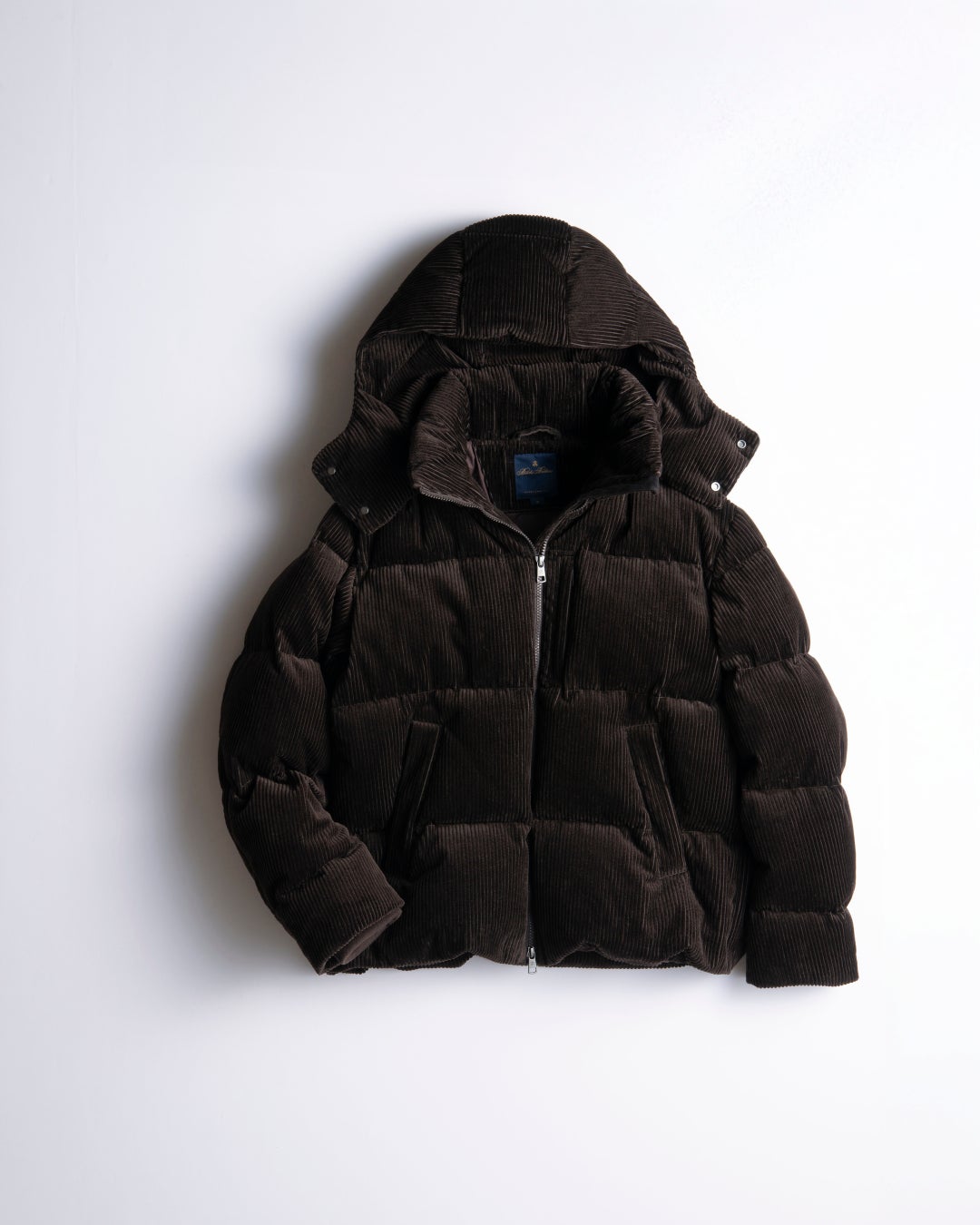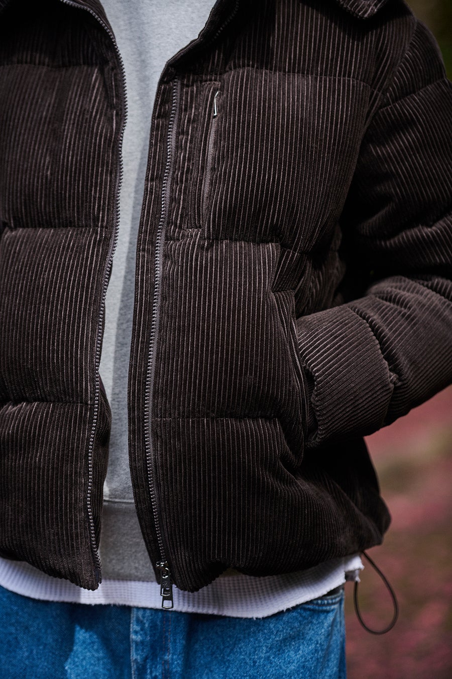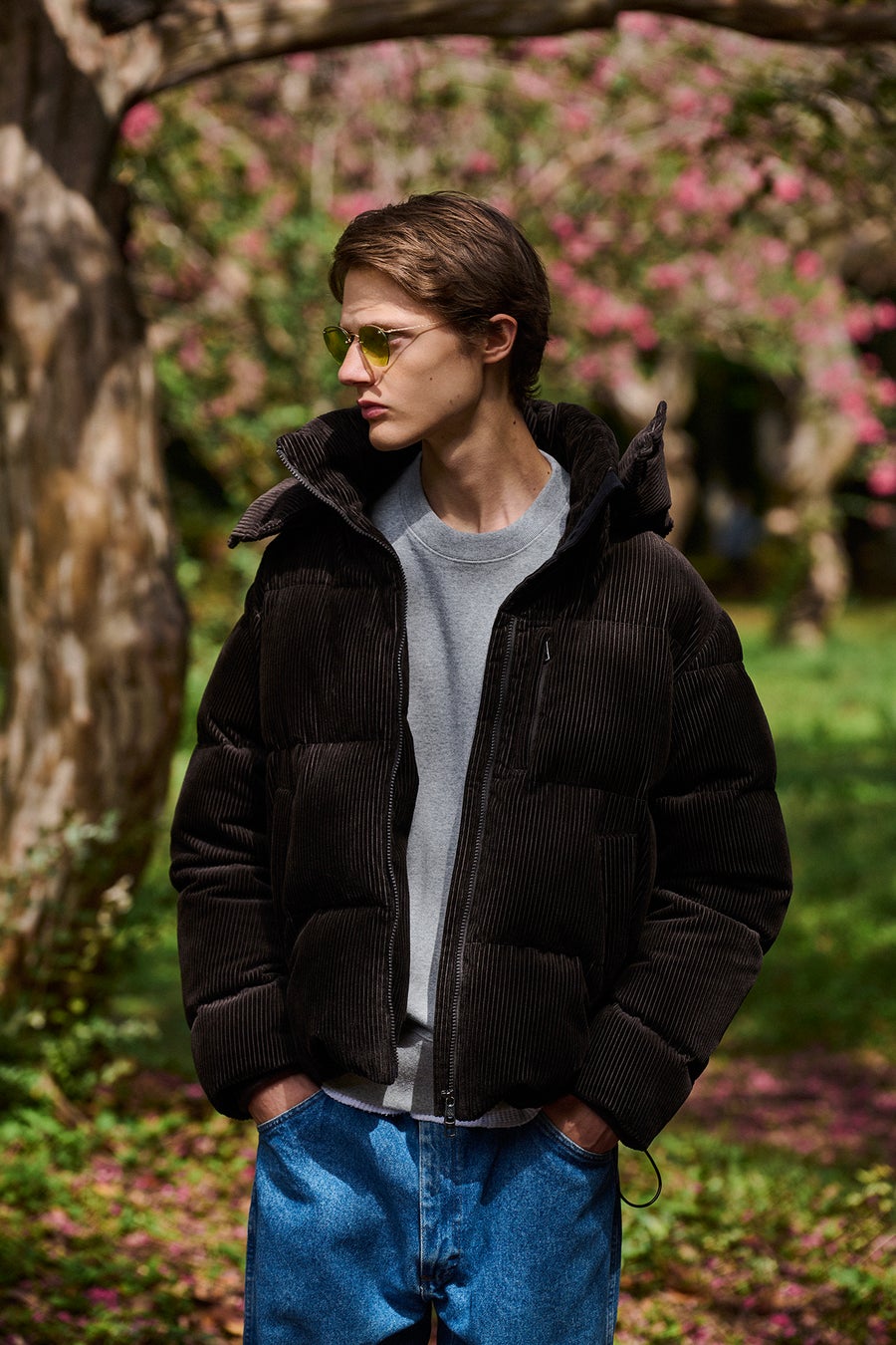 池田さんがセレクトしたのは、ウォーム感のあるコーデュロイ生地を用いたショート丈ダウンコート。冬の主役であるダウンコートをクラシカルなコーデュロイ素材で仕上げました。ふっくらとした手触りと光沢を帯びた表面感は、ノスタルジックで温かみのある印象を与えます。取り外し可能なフードが付属しているので、スタイリングに合わせて襟元をアレンジできるのがポイント。裾のドローストリングを絞り、シルエットに丸みを出してトレンドライクに着こなしていただくのもおすすめです。