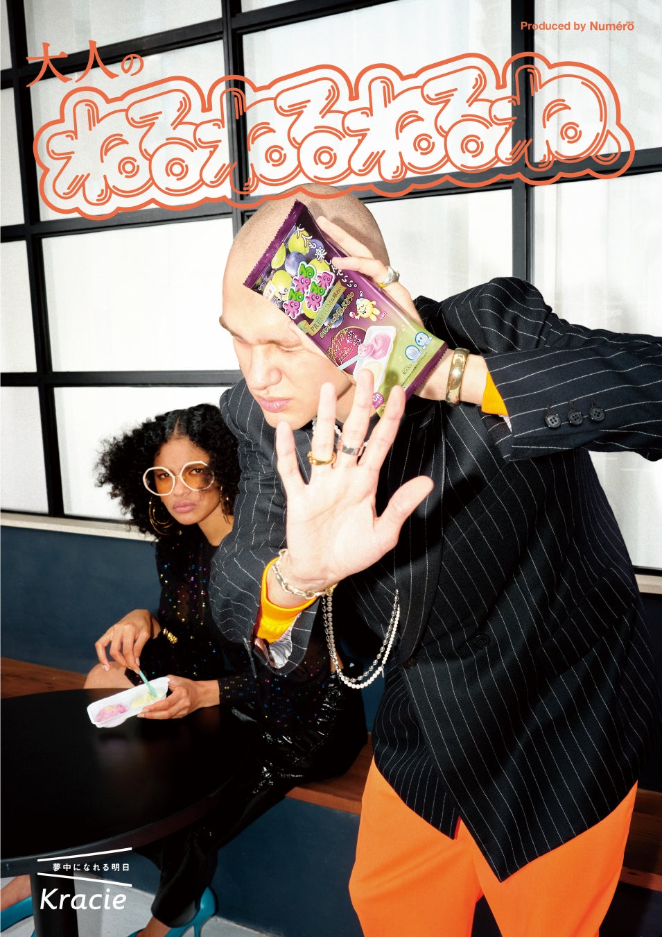 9月26日(月)からは、裏原宿エリアとキャットストリートエリアにてインターナショナルモード誌「Numéro TOKYO」とコラボした広告ビジュアルを展開いたします。モードな世界観の中に入り込んだ、普段とのギャップが楽しい「大人のねるねるねるね」は必見です。