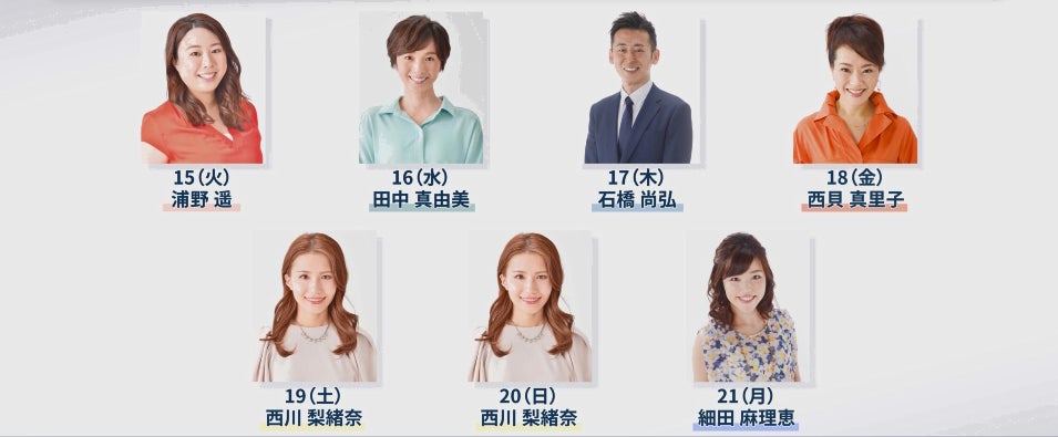 <QVCショッピングナビゲーターの日替わり来店予定(午後に登場)>※予告なく変更の場合がございます。