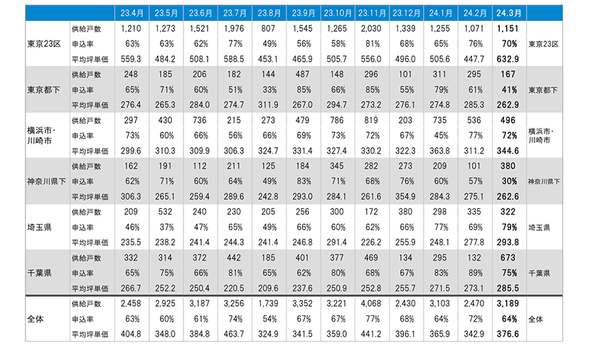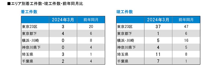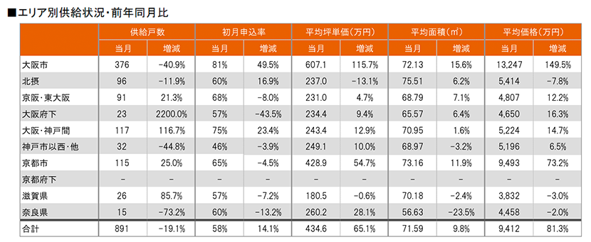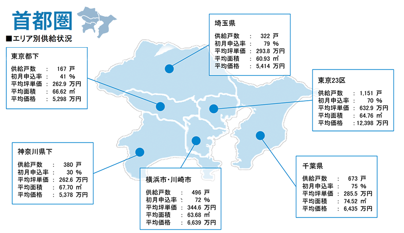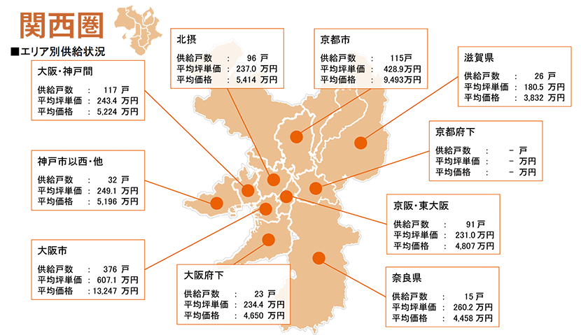集計対象エリアは首都圏及び関西で、それぞれのエリア別相場情報、需給動向、着工件数等を集計しました。