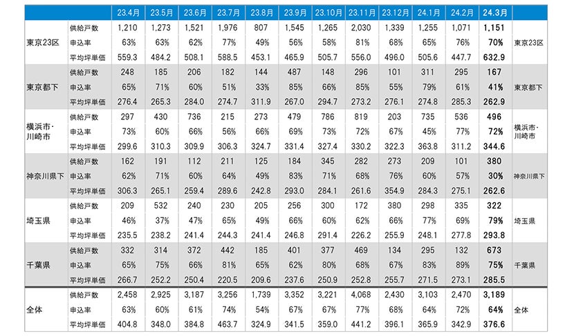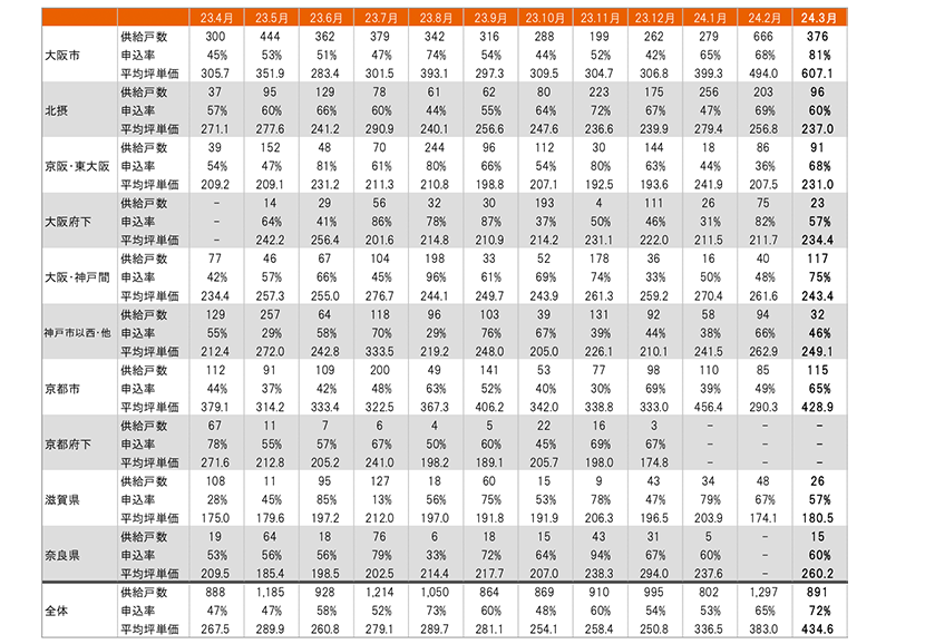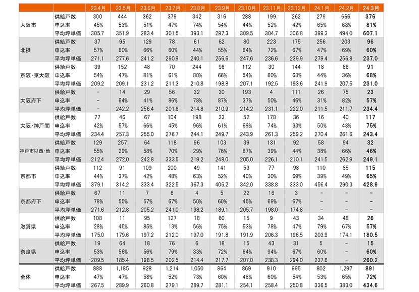 月例新築マンション動向発表~関西の新築マンション坪単価、前年同月比65.1%増。高額物件が価格を牽引(2024年3月度分譲実績)2024年6月号~