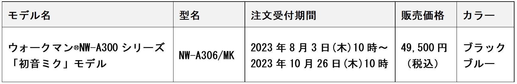 ソニーマーケティング株式会社は、「初音ミク」とコラボレーションした、オリジナルデザインのウォークマン®『NW-A306/MK』の注文受付を開始します。注文受付期間は、本日2023年8月3日(木)から2023年10月26日(木)です。本モデルでは、「初音ミク」の16周年を記念してイラストレーターの「Rella」と「上倉エク」がデザインした「初音ミク」オリジナルデザインを刻印します。