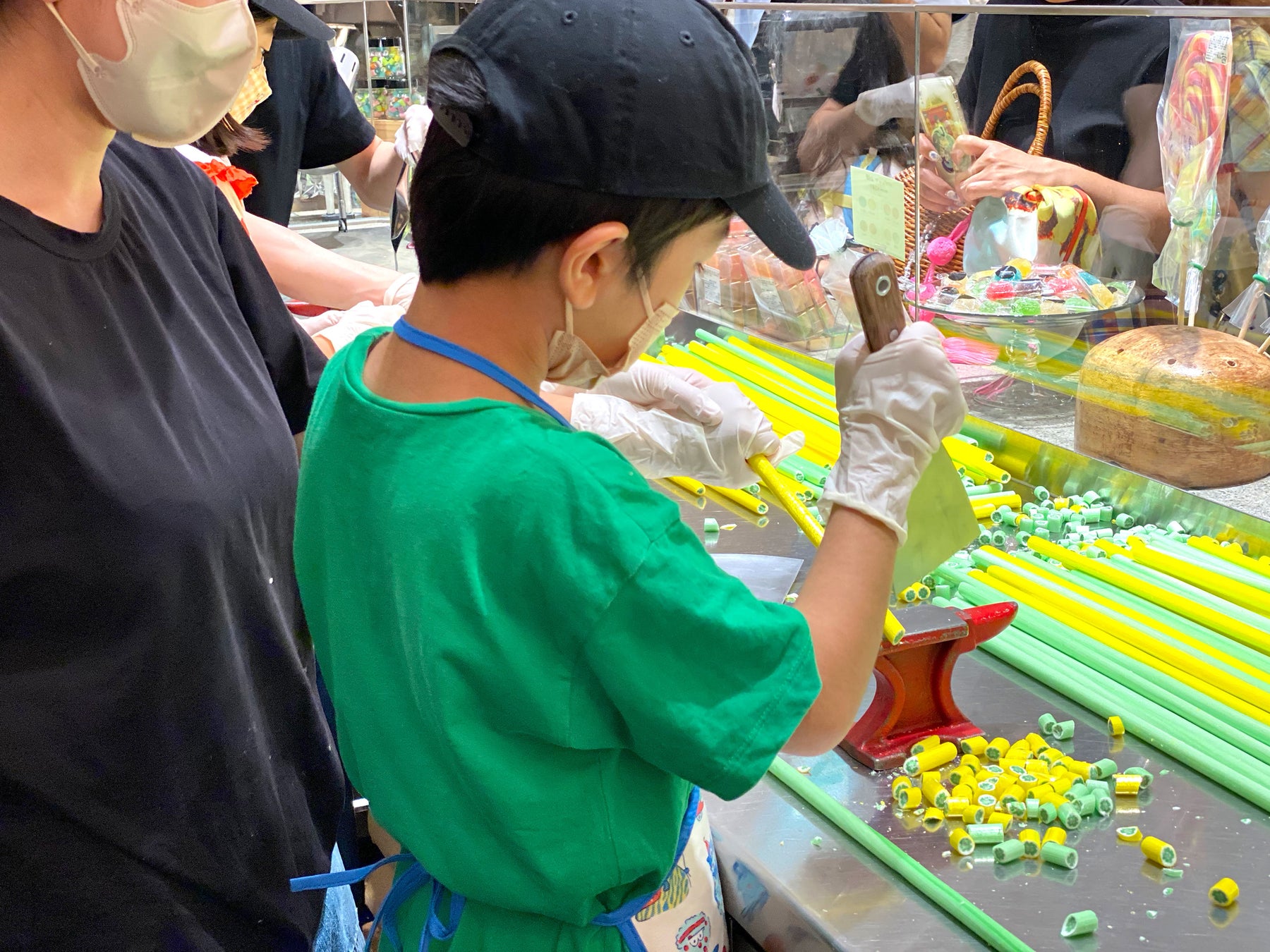 実演翌日の10月10日(月)~25日(火)には、実演を行ったキャンディ製造ブースの中に入って、職人と同じ道具を使ったキャンディカットがお手軽に体験できます。
