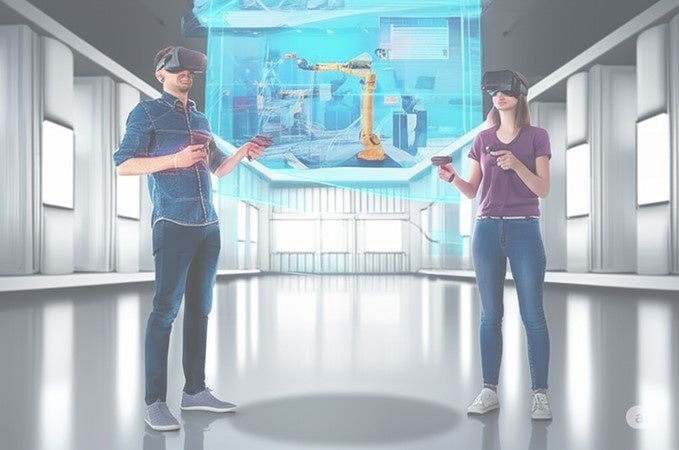 VRゴーグル・コントローラーで遠隔地のロボットアームを操作 |